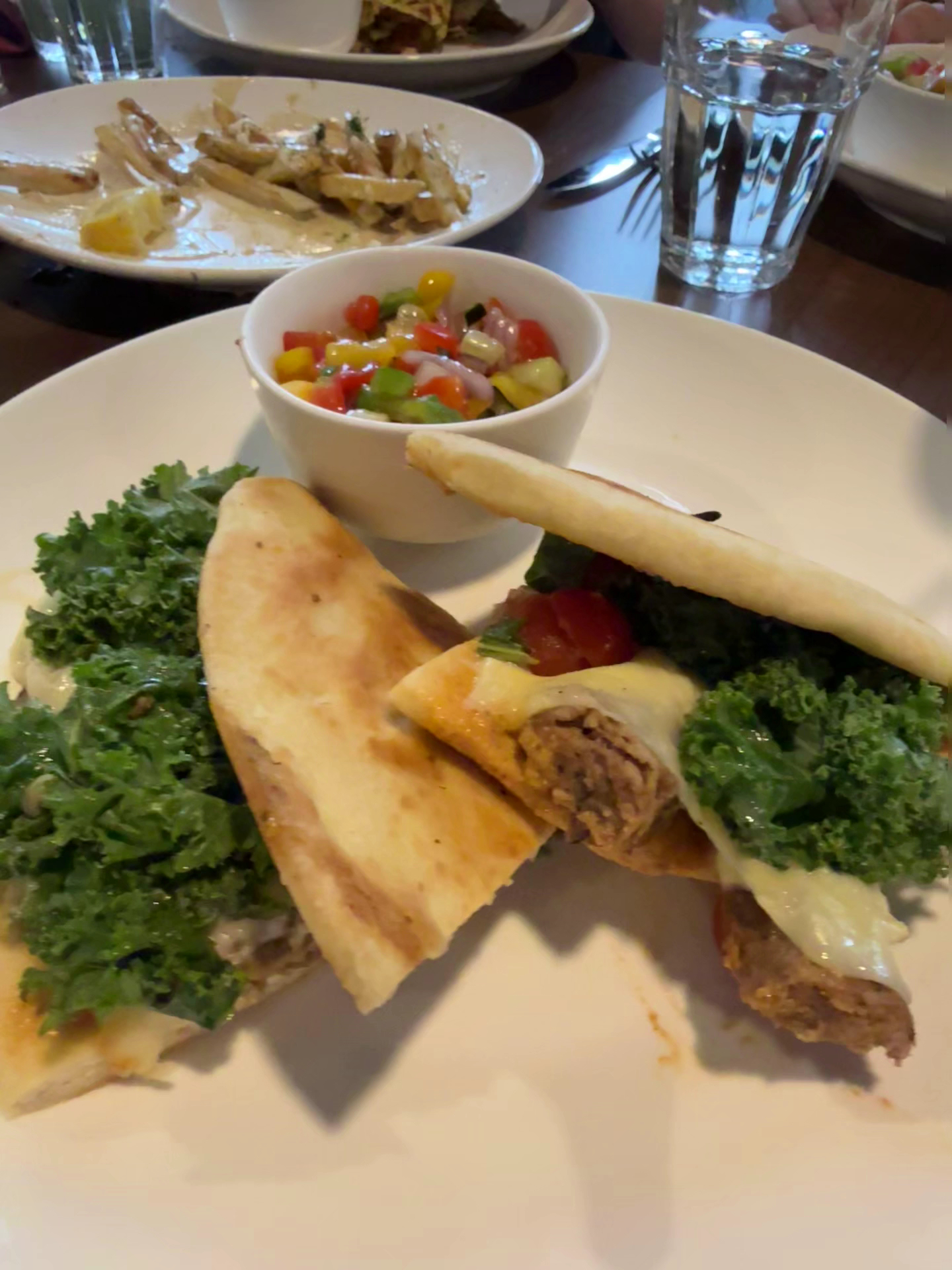 My dining partner had the Chicken Cutlet Trio and I had the Moussaka Bowl, and we tasted samples from each. Absolutely delicious!! The portion sizes were plenty and prices are in par with comparable with other area privately owned restaurants.