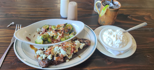 Pictured is my order. Z's Gunpowder rub strip with blue cheese and bacon. Sauteed brussel sprouts (loaded). And Iowa mule to tie it all over. The steak was a little more done than I expected for ordering at medium rare. But I cannot fault this at all. It was still amazing.