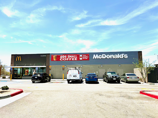 This McDonalds has been open for probably a year, but when I went there today the drive thru was closed so arrows could be painted on the asphalt. Going inside for the first time I was taken aback by how sterile and bleak this supposedly modern looking dining room was; it really gave me the ick. My order came quickly and the Chicken McNuggets were really fresh and delicious. The fries lacked salt and were bland like the dining room. Worst of all it is nearly impossible to access this McDonalds if you are driving East on Avenue 42 as there is no entrance available due to the median, and at the light you are not allowed to make a U-turn. So when you make the left hoping to make a U-turn at the next light - well that's not legal there, too! So you get stuck in driving way out of your way to find a safe place to make a U turn after waiting through 2 lights so you can double...