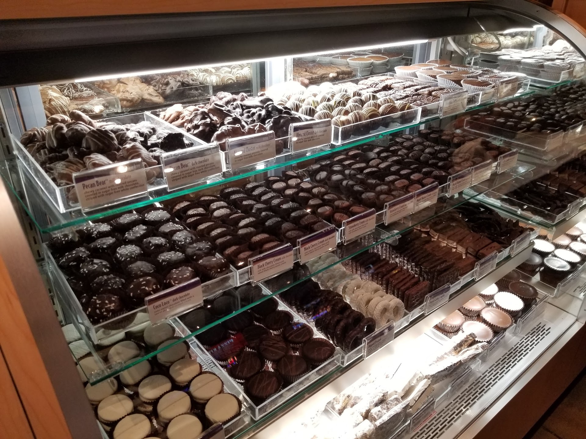 Read moreExcellent service and selection of chocolate turtles, barks, bonbons etc. Staff was very friendly towards my parents and I. We used our 25 dollar dining credits here for about a pound of chocolate turtles with macadamia nuts.