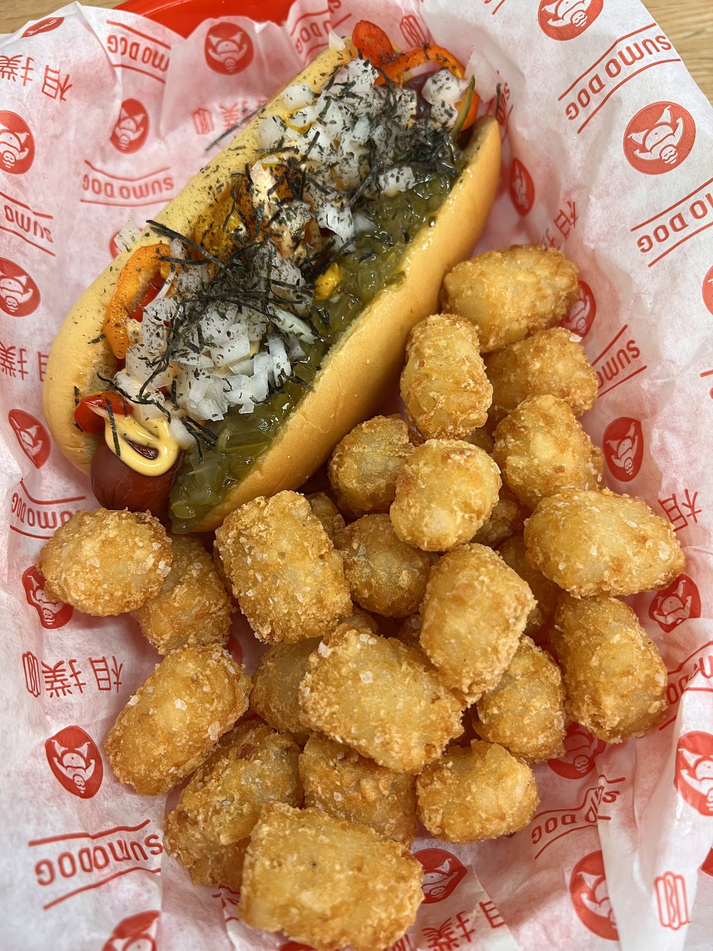 Ā Ā Ā Read moreLet me start by saying the food was great, the cashier was friendly and helpful, and it has a cool interior design. I had the Sumo Dog with tater tots; my husband had a Sumo Chili Dog with tater tots; and my son had a plain burger ādogā. Everyone agreed - the food is delicious! My son was so happy that the burger in a hot dog bun (literally as it sounds) was an option because heās not a huge hot dog fan⦠plus, he got cheese to drizzle on top, and a new Sumo Dog fan was born.