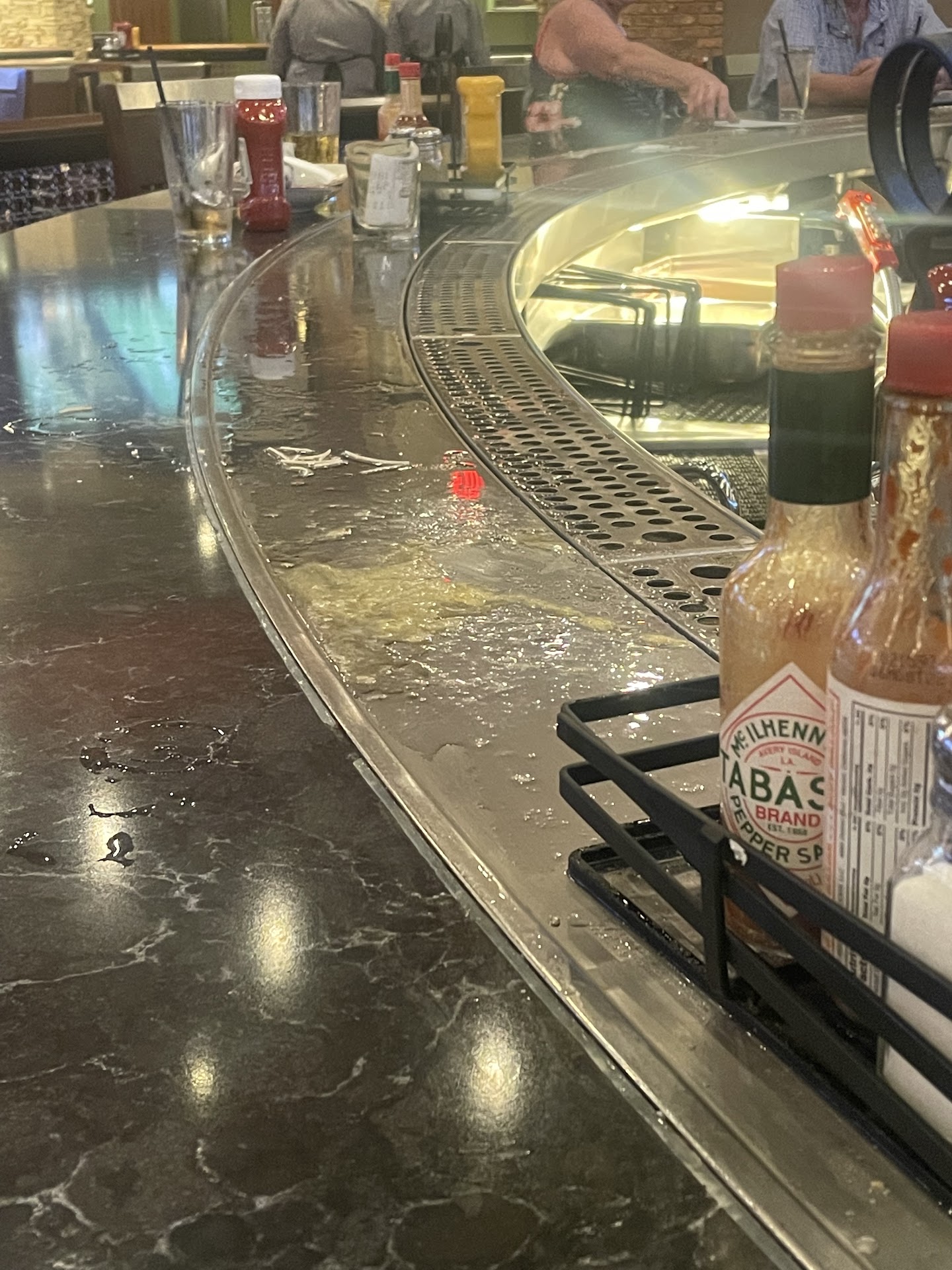 For instance, two nights ago when we went to check in for a table, the two hosts looked at us with disgust, as though we were rude to have interrupted their conversation they were having as we entered. We asked twice for a high chair that was never brought to us. My sister had to go and find where they were at after returning from the restroom and got it herself with the help of one of the male waiters. The female waiter we had this time was great, and our drinks stayed on top of which I was thankful for. Because in a past experience, we've waited as long as 10 minutes for a drink refill and waiters who would rather duck into the kitchen halls entryways and play hide and seek.