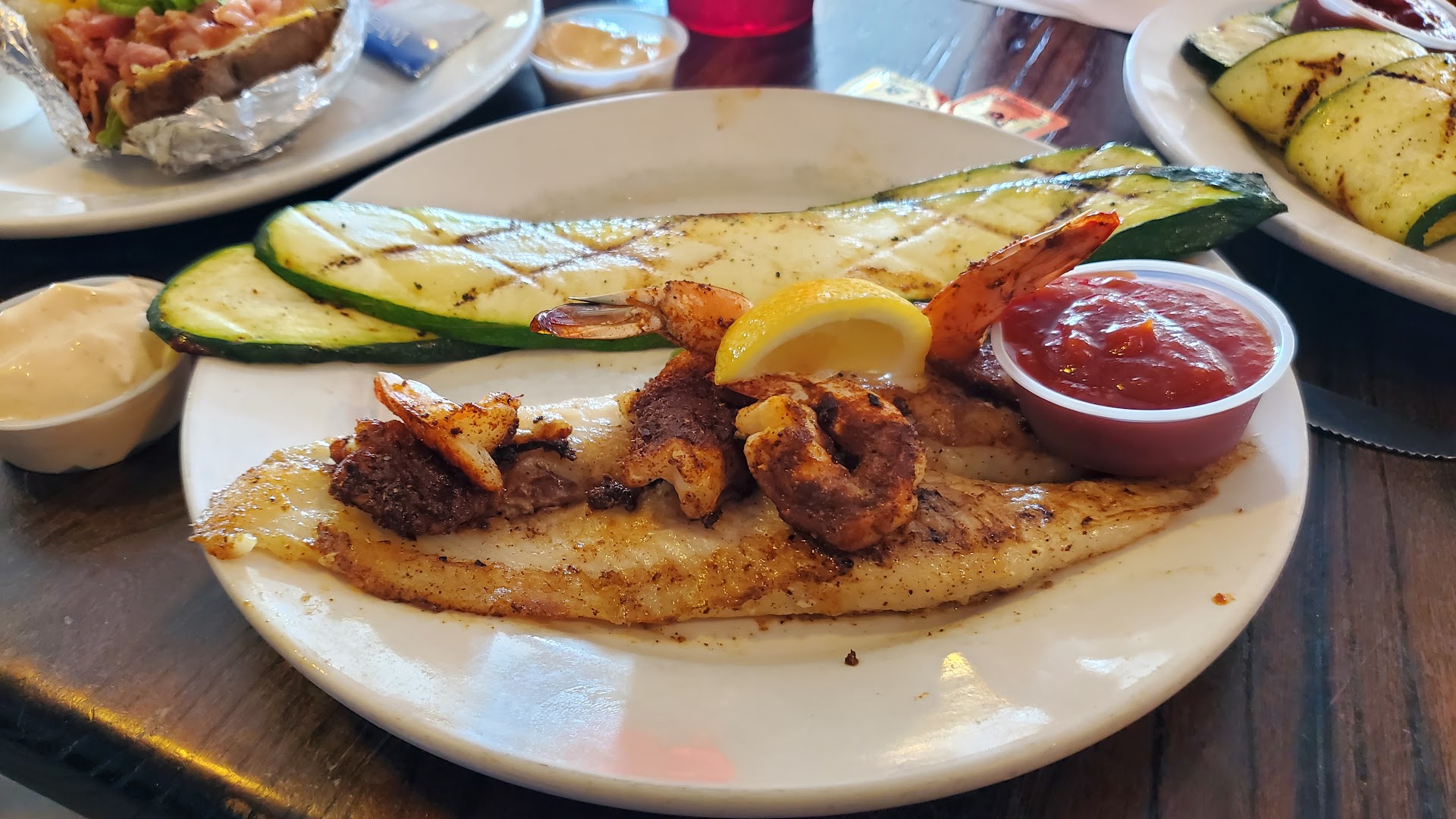 Ā Ā Ā Read moreIt was ok. My biggest issue is they did not devein the shrimp and the waitress completely forgot my husband's salad but she took accountability, which is rare these days. Their blackened spice is pretty good, it's not hot and it is flavorful. I hate when cooks put so much cayenne or hot spices on blackened foods, it takes away actual flavor and Blackbeards Too did not do that. You can actually taste flavor (I asked for extra on the side and added more to my fish) The grilled zucchini was surprising as it was sliced long ways but it was grilled just right. I just feel like they could have chosen a nicer spot, it looks like it was a small retail store converted into a small restaurant. It just has a cheap feel and for Blackbeards being so popular in Corpus, I assumed it would be bigger and on the main road. The pricing is ok for some items and high for others. We ordered the shrimp and fish dinner. The fish is Swai (which I've never had before) but it was not a nice white flaky fish that I was hoping for, it was more like a cheap tilapia. It was not worth $20 but I guess you pay for the atmosphere. But now I know I will never order Swai fish again, it just isn't worth it. The fried shrimp is butterflied and the breading was light and a little crunchy, which was so good but realizing they don't take the few seconds to devein shrimp, ruined the experience and it plays part in the noticeable shortcuts, like sticky tables, servers sitting around, staff playing around too much. The restaurant has a lot of potential, it has a good name as Blackbeards has a good reputation and this was just not the experience I expected. 1st step would be stop serving one of the cheapest fish avail and spend a little more on a better fish for your house plates. There are articles that mention how swai is not really good to eat, especially due to the farming conditions of Swai. Ask for a different type of fish. Sorry guys. š Next time, if I come back I'll make sure to order Mahi or...