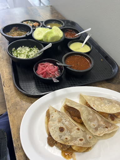 I got the sampler with friends and it was nice that you could get a sampler of each type of guisados. Off the top of my head, there was the bistec con Papa, chicharron, Winnie's con verdura, eggs with chorizo, and carne con chile. They were all excellent. It came with a large amount of condiments to add such as pickled onions, various salsas and cilantro, onions and limes. It also came with a few tortillas that are warm. The guisados were all braised very well and very flavorful without being salty. I will say I would ask or like more tortillas as it isn't enough for the sampler. Other than that, the staff was super chill and nice and were attentive to our needs.