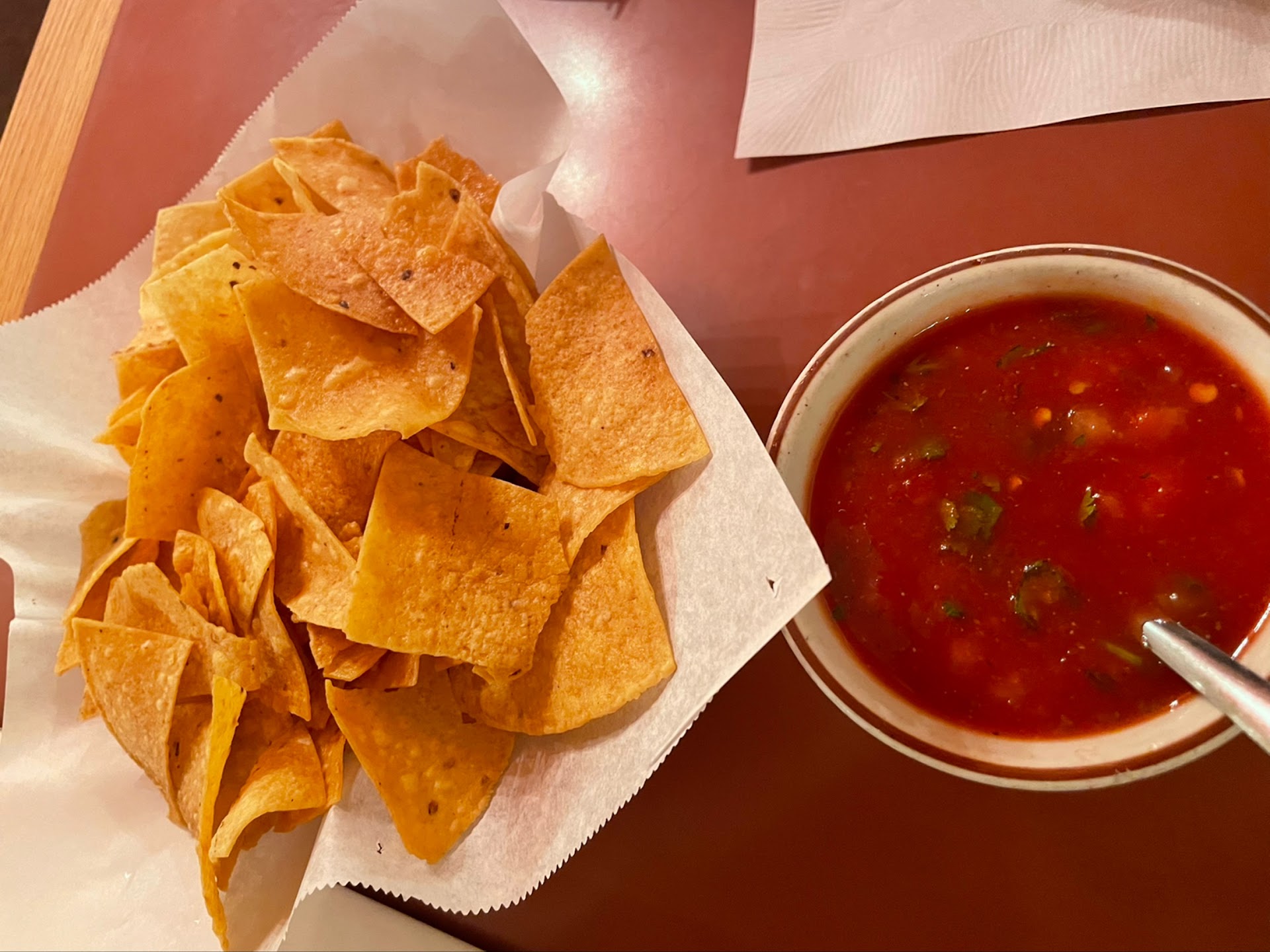Complimentary chips and salsa. I didn't try the salsa because I can't take spicy at all (I know, horrible 😓) and my husband wasn't around to tell me how spicy it was. The chips were crispy and tasted good. There was no greasy flavor, and they're thin but strong enough to pick up a bunch of toppings. I used them on the sour cream and guacamole from my burrito.