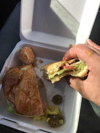 Let me start off by saying I was starving , I wanted something fresh , tasty , something to really hit the spot ! Boooom! I get out the dmv and see a (Donuts) sign - I don’t know if everyone knows about this —— but the deli sandwiches in these donut spots — they’re usually great - this one in particular “CHRISTYS “ is amazing… Omg I spent like 9.75$ Got this amazing crossaint - a soda pop - and a bag of chips … I mean come on !!!!!! Ohh and look at my photo she threw in free donut holes(2) I ate the other and she put some fresh chili’s on the side !!! I mean