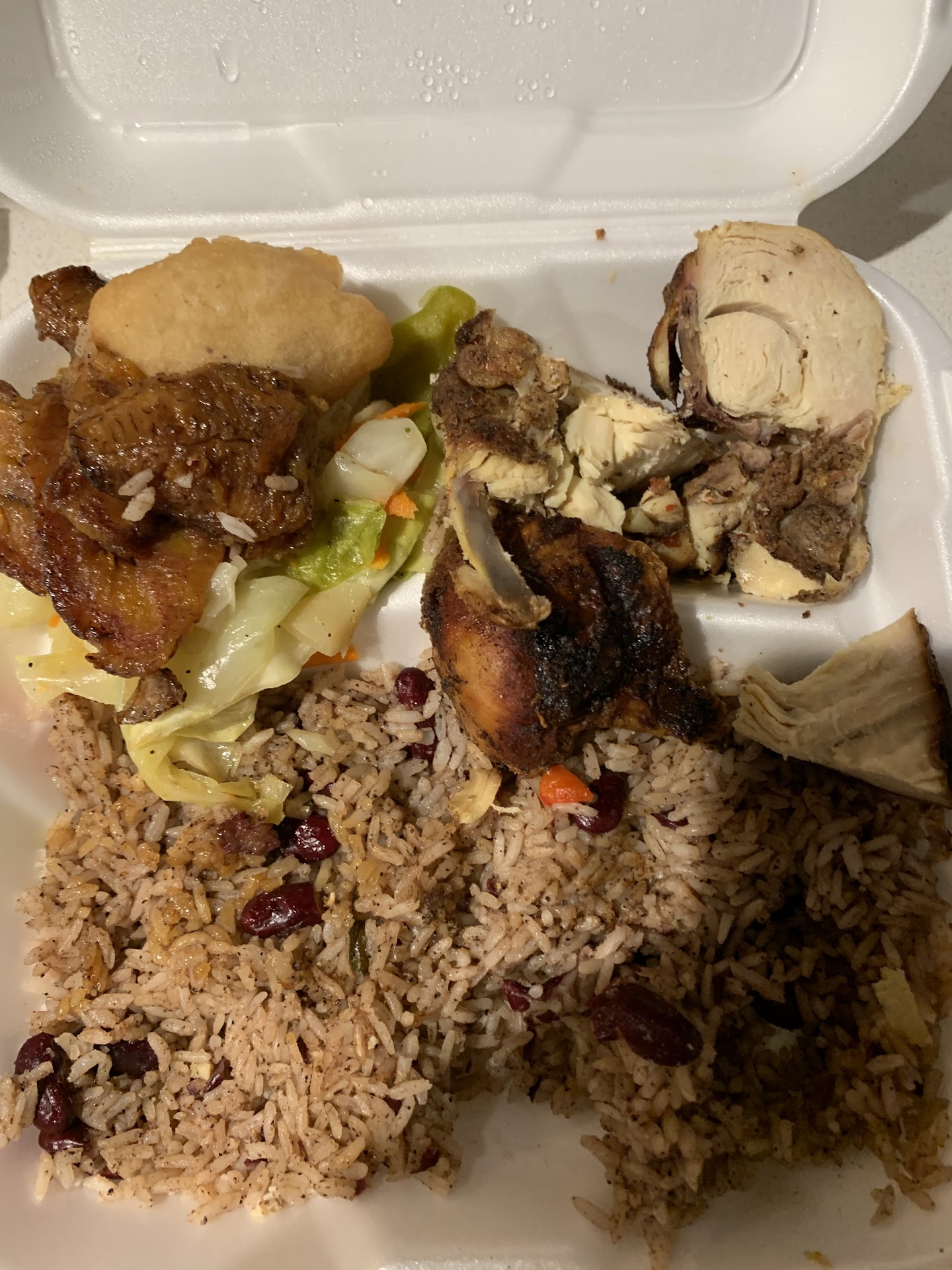 ย ย ย Read moreI owned a restaurant in the US Virgin Islands itโs hard for me to eat out because I am very tough critic when it comes to cooking West Indian foods. The presentation, customer service and one for me the taste of the food. The red peas rice was dry and grain was hard. The chicken didnโt have enough seasoning by the time I pour the jerk sauce on top that too just had bite of fire but again the taste wasnโt there it fall flat. My mouth wasnโt watering for more. Second the customer service was so so. The cashier couldnโt tell me if the food taste good when I ask to the point she looked annoyed that I asked. Yes I ask because things like this disappoints me. When I cook itโs with love, from my conch in butter sauce, pea soup, my curry chicken, oxtail, saltfish and Ducana, goat water, whelks, fish soup, bake Mac and cheese, sweet potato stuffing, my beef, saltfish Pattieโs and Johnny Cakes much more believe me when I say my customers can feel and taste the love from the order taker to the cook. Yes I am a damn good cook. Tourist and locals alike come back over and over because I offered a full package. I did not get the half the package today. I donโt recommend this Jamaica...
