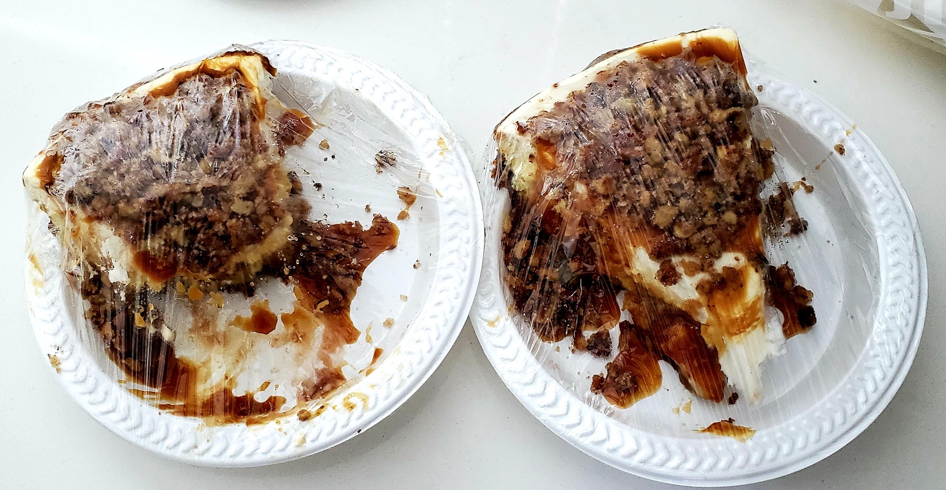Fast forward to yesterday (June 13, 2023), I bought THREE (3) slices of the same cheesecake. I ate half of mine and my daughter and granddaughter split one, the third one was untouched. see photos