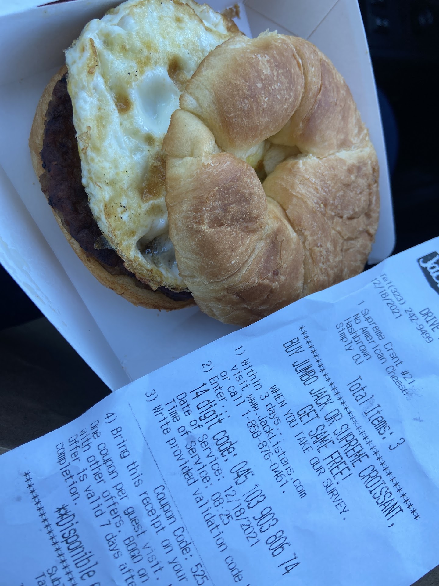 Read moreJack in the Box has definitely had its up and downs with me the make-it-or-break-it point for me though is the customer service and unfortunately I think this Jack-in-the-Box Lacs just that and cleanliness they don't really get rid of the bums that are outside of the door which they just stare because they're hungry or they stare because they're checking out one of your family members, I got to say the worst experience there wasn't really a food situation but it was the manager that was running late and he pulled into his parking lot as if he was in Tokyo Drift almost hitting my wife, turns out he had to use the bathroom real bad, we're usually pretty easy going people but respect...
