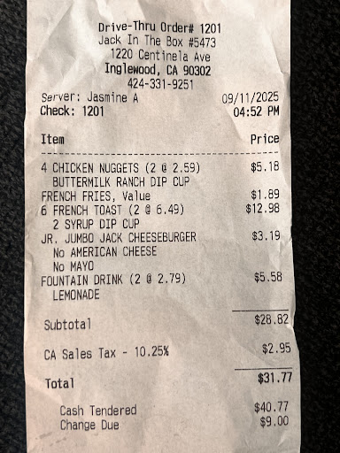 Date of Visit: October 31, 2025 Location: Jack in the Box, 1220 Centinela Ave, Inglewood, CA 90302 Employee Name: Bernarbe Dear Jack in the Box Customer Relations Team, I am writing to formally report an unpleasant experience I had at your Inglewood location on Centinela Avenue on October 31, 2025. The employee who served me, named Bernarbe, was extremely rude and dishonest during my visit. I ordered a Sweet Cream Iced Coffee, but when I received it, it was clear it was just a regular iced coffee without the sweet cream. When I questioned it, instead of explaining that the location might not carry that item, Bernarbe insisted that it was sweet cream and argued with me. I have ordered this drink from other Jack in the Box locations before, so I know what it should look and taste like. I later called the store to request the regional manager’s contact information, and Bernarbe himself answered. He first claimed to be the regional manager, then changed his story and said he was the store manager. He refused to provide any name or contact information for a higher-level manager. This behavior is dishonest, unprofessional, and not what I expect from a Jack in the Box representative. Lying to customers and refusing accountability reflects very poorly on the company. I’m disappointed with how I was treated and would appreciate this matter being looked into. Please confirm that this complaint has been received and let me know if any follow-up will occur. Thank you for your attention to...
