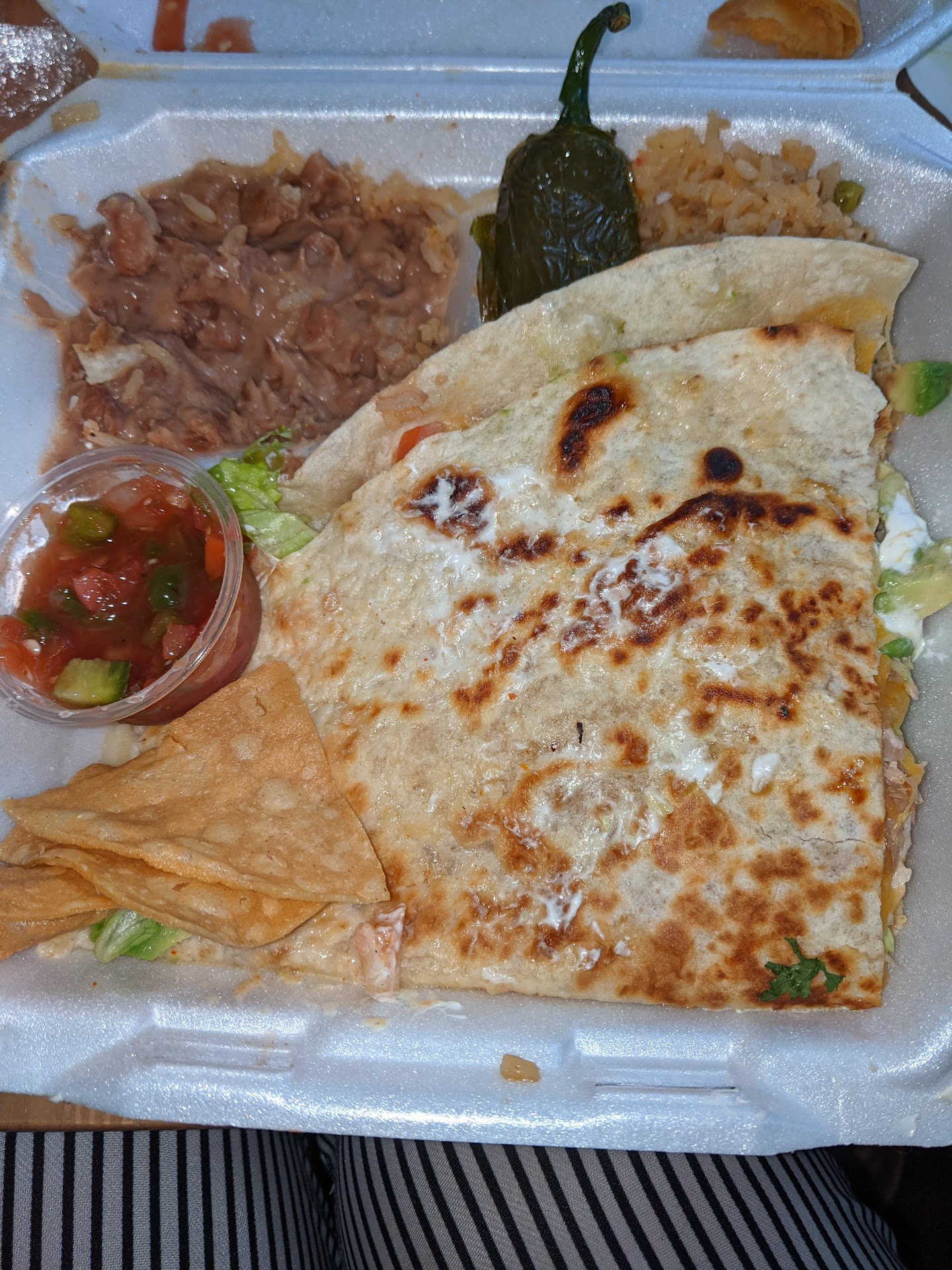 Read moreFood is really good. This is the chicken quesadilla with a side of beans and rice. Cost $15. You could split the quesadilla for 2 people. The picture is only half of the food. A bit pricey but delicious! 🤤👍