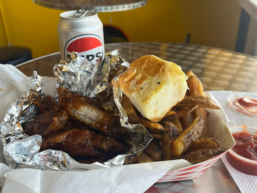 Read moreI saw this place on social media and had to try it. I ordered the sweet fire wings and fries combo. One thing I notice is the family community oriented atmosphere. It’s almost like you are visiting your favorite aunts place to go eat except she charges you to do so! Overall the wings were juicy and these ones were sweet and not spicy as I thought but great. I ordered a yellow on chocolate cake that looks and taste like your auntie made. You cannot beat that! I look forward to trying some of there other menu options particularly spaghetti next time...