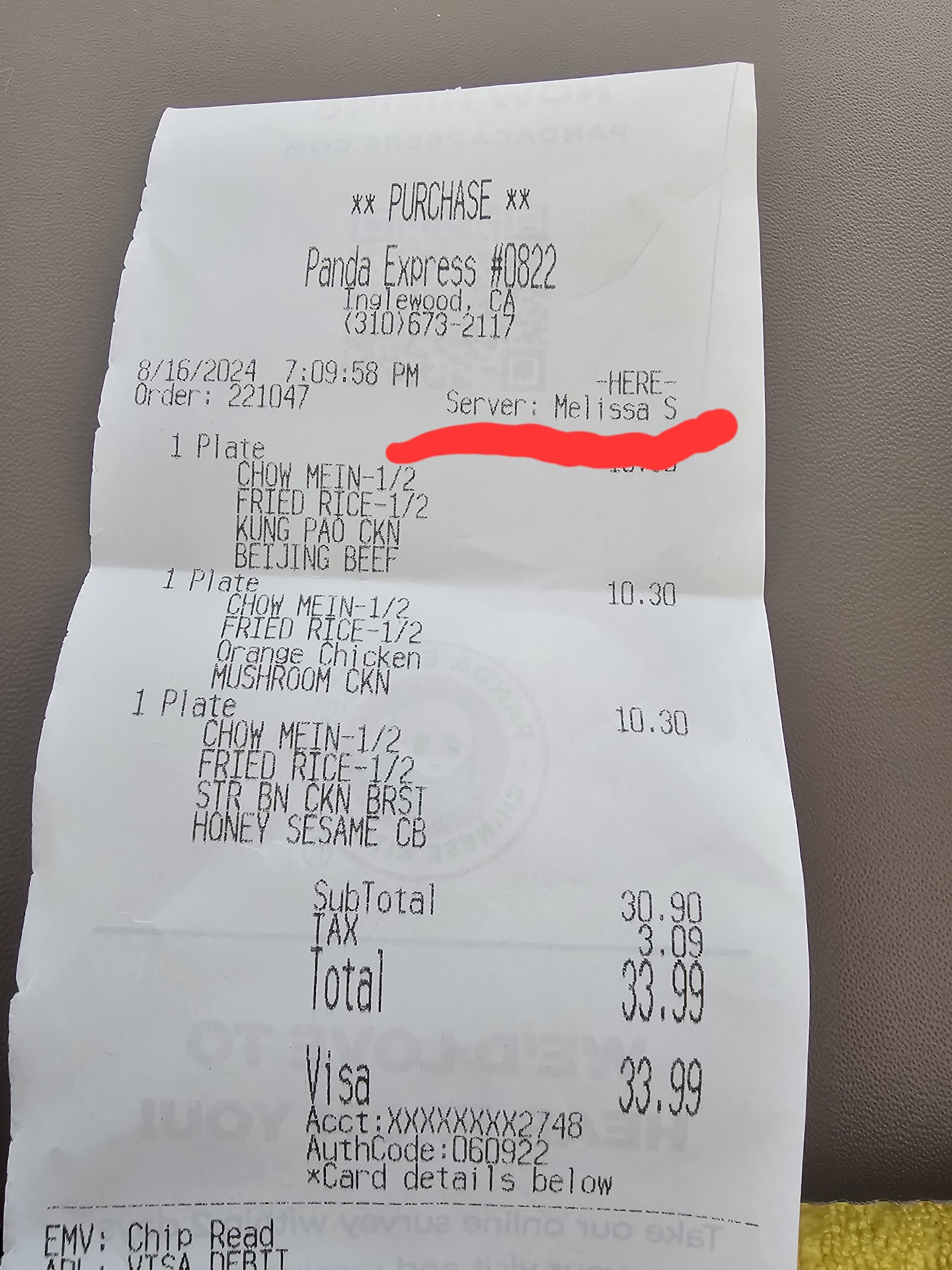 Read moreThis was my favorite panda, I have complained before on the amount of food is given according to your ethnicity, happened again, I always notice this. Also, now the food server has to watch and control the number of people coming through the door. The server stopped making plates and went to door to control the traffic there, then returned to dish up food. Place a person at door to control traffic there! Also, I had to ask more than once for hot mustard and soy sauce, I bought three plates and she acted as if I could only have one per plate. You never have enough hot...
