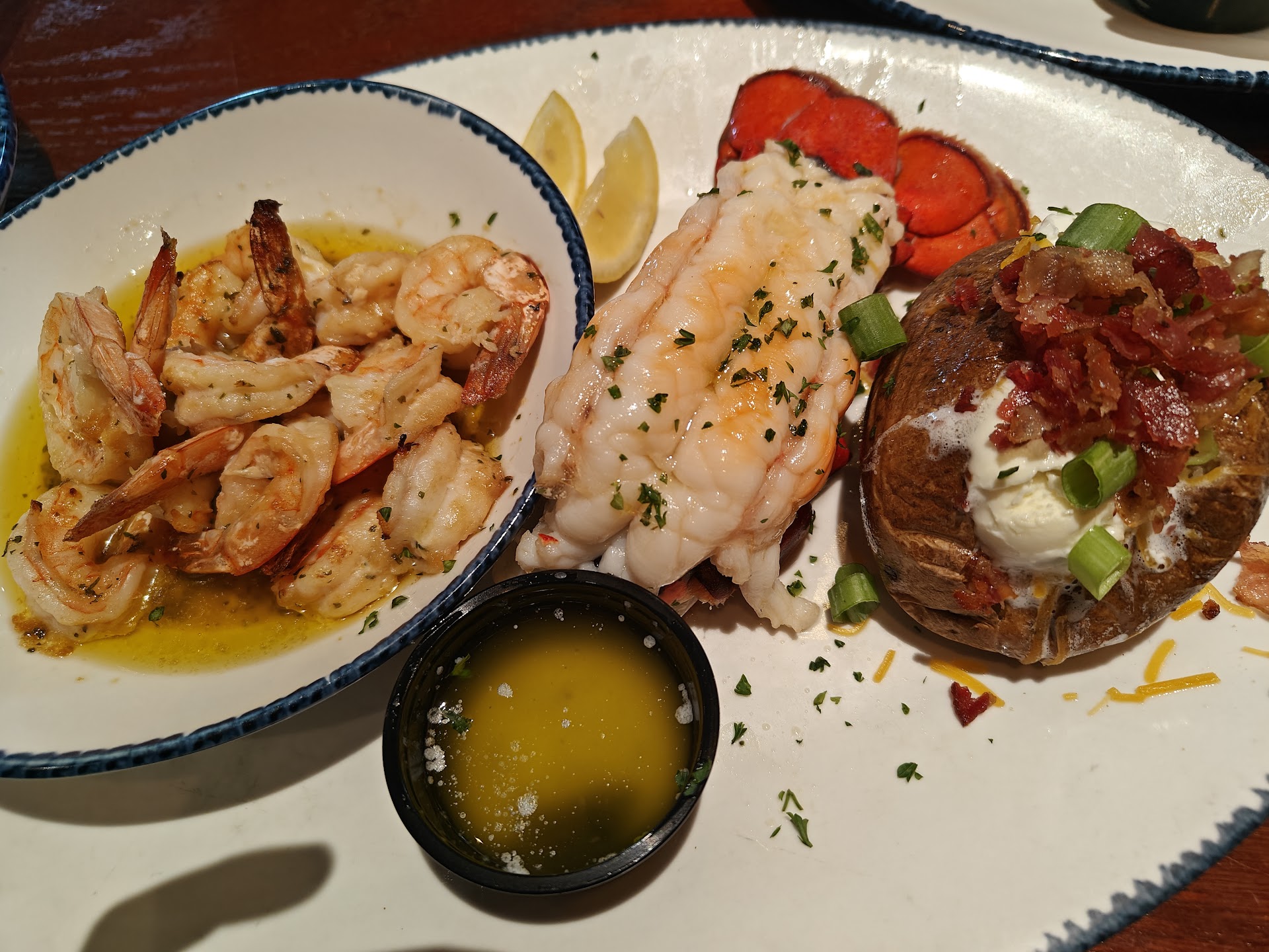 On Friday 3-21-25 We arrived at 5:40pm and sat at bar until our table was ready for a party of 7. We were seated at 6:09pm we immediately ordered more drinks, and appetizers. (1) appetizer came out immediately, we ordered (4) lobsters pizzas w/ no tomatoes and also ordered dinner (4) ultimate feasts, , lobster mac & cheese, lobster linguine, everything we ordered was lobster something. That requires very little cooking. An hour goes by we asked the waiter what was going on with our drinks, he came back with some lame excuse about the bar being delayed. We also asked about the pizzas, he went and checked on them, came back and said the pizzas are pre-made with tomatoes and did we want something else. Mind you this was an hour later. I believe the waiter dropped the ball on that one and forgot to say something about no tomatoes. We took the pizzas and removed the tomatoes. Then we asked about the drinks again AND when our food was going to come out? Mind you it’s now well over an hour in a half later, since we ordered food and drinks. The waiter blamed the bar and kitchen. The manager was called over. He mentioned he would go see what the hold up is. He never came back. They bought out plates of butter for our food, but no food. The food literally came out 40 mins maybe longer after the butter. The butter sat so long the butter hardened back up. Of course the manager was called over again. We order all Lobster Feast, Lobster with steak, lobster, mac & cheese, loaded potatoes, shrimp, skewers etc. Nothing but the steak that requires a whole lot of cooking. It’s sea food for goodness sack. They are probably under staff because they probably don’t want to hire “pay” more people. The place was full capacity too. For Inglewood to NOW be classified as high end, this location is operating at poverty levels. The second manager came over and noticed the plates of hard butter cups about 12-14 of them. I said we have waited so long the butter hardened and still no food. He said yeah that was the first thing I saw. We explained to him that we got there at 5:40 and now it was close to 9 o’clock and we had just got some of our food but was still missing food and drinks. He apologized too. Let me shorten this long story. The manager ended up taking $200 off the bill. But really for the sake of the business name they should have comped the whole bill. How do you order seafood at a seafood restaurant at 6:09 pm and don’t get food until after 8:30pm and leave at 9:12pm. It wasn’t because we were just socializing and having a good time. No because we were waiting on food and drinks. The service was HORRIBLE AND SLOW! The food was good once it finally came out. So, if you go to this location, do not be in a hurry. The next time we want Red Lobster we are willing to take the drive further out for...