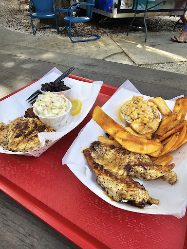 First of all this place is on a dead end road. Was cool getting there even though I thought it was the wrong area at first. The people are very nice. I asked for some shrimp from the market to be set aside for me to pick up at the food truck and they had it in the freezer. I was a little disappointed in the food though. The blackened shrimp, though perfectly seasoned were a tad over done, that's fine but the rice and beans really had no flavor. The coleslaw was not overly dressed which I appreciated. I would love to come back and hang out for a spell and check out the market myself. The royal reds I got were out...