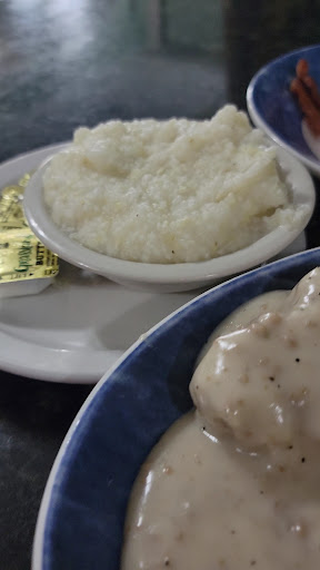 We ordered our food. My son got spaghetti and meatballs and I ordered breakfast. When the waitress brought my plate she handed it to me and quickly took it back. I got a glimpse of some blue lint looking material was in my sausage. She went to the kitchen and dusted off my sausage patty then tried to convince me that the 3 seconds it took to walk out of sight and back in sight that more sausage was cooked. My son couldn’t even eat the spaghetti it had a funky smell to it. We barely ate it was that bad.