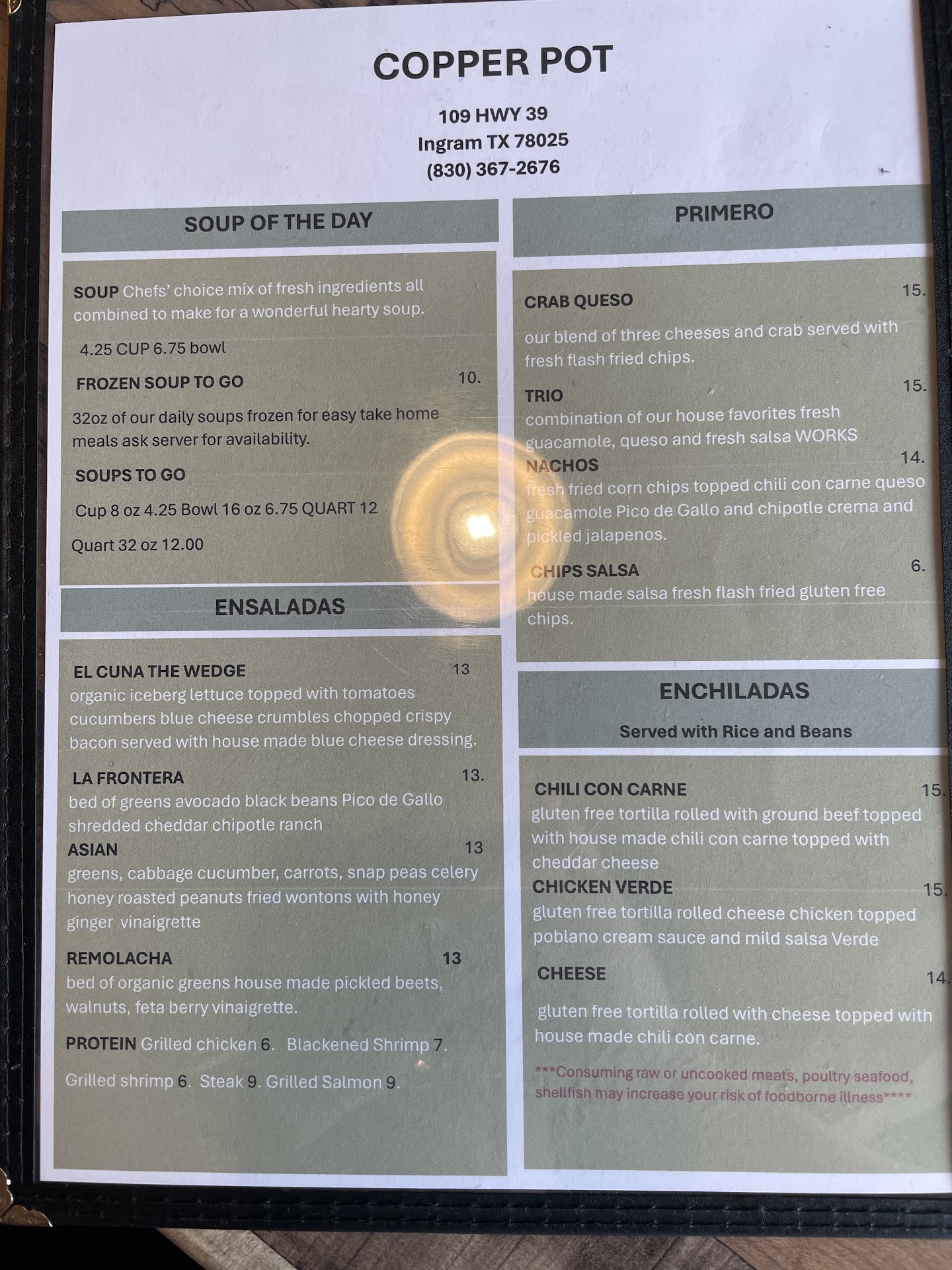 The Copper Pot loaded us up with delicious Reubens, beef and chicken enchiladas, cheeseburgers, fries all the fixings and the BEST charro beans Iâve ever had.