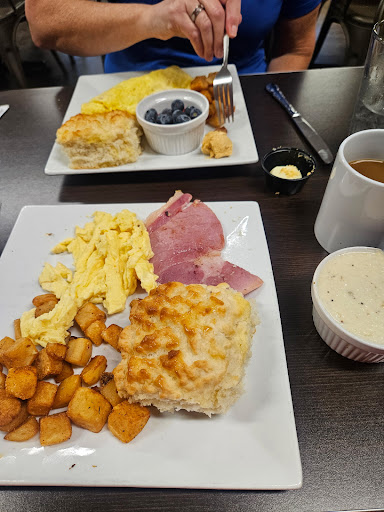 Now that I've rambled on about the biscuits, I'll talk about some other items. The grits are creamy goodness! There is pepper jack in the grits so there is just the right amount of spice to them. Omelets are big and fluffy, with a good amount of fillings. Dan'l Boone ham is country ham but not too salty. I'm not a fan of salty ham and this ham fits in my taste range. All food I've eaten has been great.