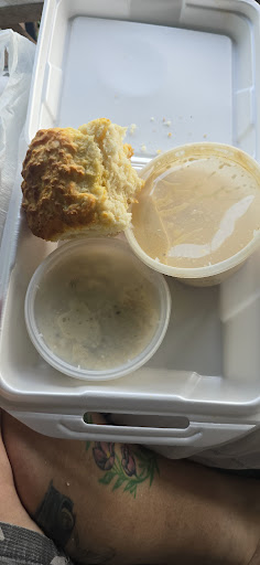 Read moreThe biscuits are the best around. They are big, not heavy, and have great buttery flavor. There isn't a reason to add anything to the biscuit. However, they also offer flavored butters and different jams. I usually try a few of those, and they're really good, but I end up eating at least half of the biscuit without anything. So good!
