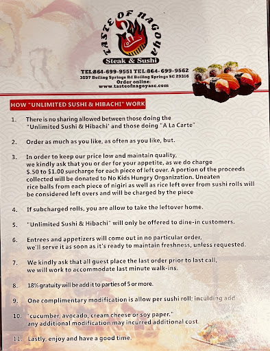 On top of forcing kids to eat from the all you can eat, they added Additional rules to some of the dishes “50 cent charge after so many orders” of specific sushi as well as “only one per guest”. It’s either all “all you can eat” as stated in the “rules” or it’s not.