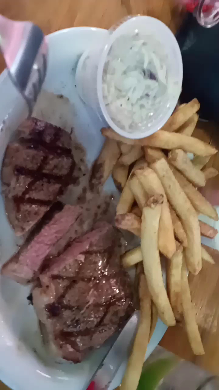 Fab One ordered the Montreal Sirloin, at $15.99 Again, the menu states 'Fresh Extra Thick Cut 10 Ounce Sirloin Topped with Zesty Spices. A Local Favorite!'. Her sirloin was cooked perfectly Med Rare, as ordered. However, she felt that ALL she TASTED was the Montreal seasoning! The taste of the meat was overwhelmed by the pepper, salt and other Montreal spices. It was mostly WAY TOO SALTY.