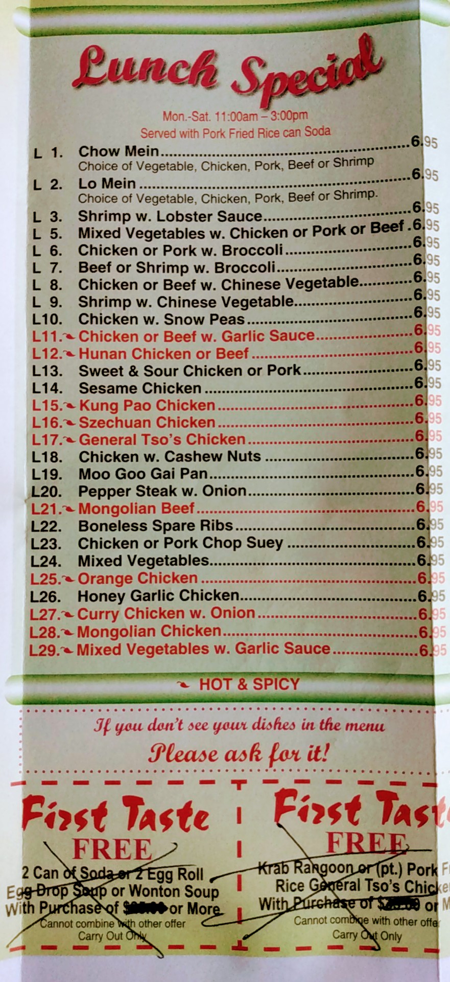 Read moreBeen wanting to find some good Chinese take out in the area and found this place from Google. At first glance, I wasn't sure they were open. The shopping center only has a couple open stores as it seems the anchor stores have left . Luckily, they were open and friendly enough. There were two of us and we both got the lunch special. One was shrimp and broccoli, the other one was beef and garlic sauce. The shrimp was good, and decent size, 5 total. The beef was soft and had only one or two chewy pieces. Better than most take aways. The main issue was both were kind of dry, with hardly any sauce. The special comes with a can of soda as well, but we had to ask for it and was directed to a cooler with 3 choices. Coke, Sprite, or orange. No diet soda. The rice is the yellow pork fried style, and was fresh. If in the area, maybe would try again and see if it gets any better, but wouldn't make a special trip. You can eat inside if you like, but the seating is limited to a couple tables like you'd expect from similar places and really designed...