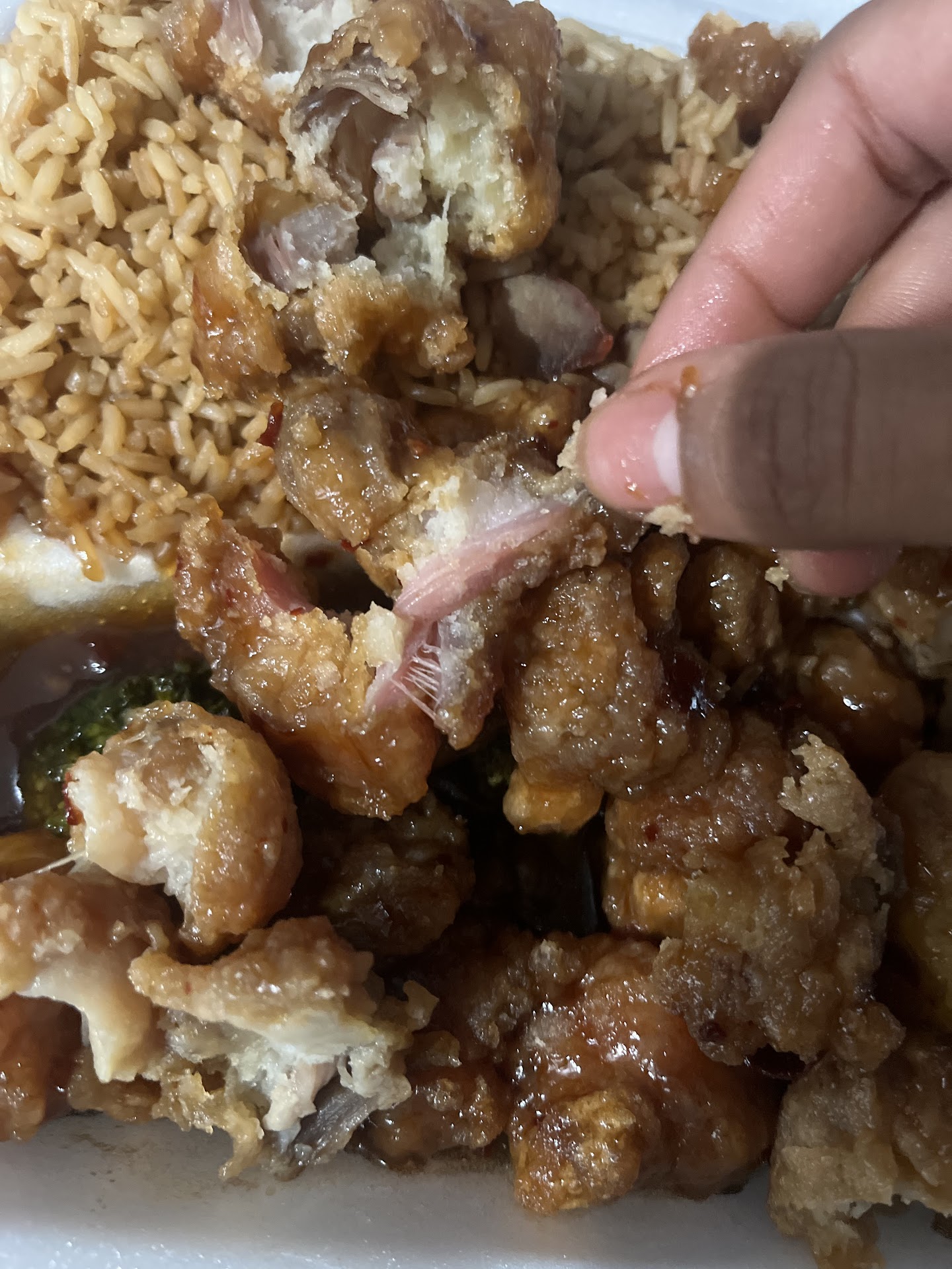 Read morei wish there was an option to put 0 stars. i never complain about restaurants but this is genuinely the worst experience i have ever had. my partner placed an order over the phone for me to pick up after work (general tso chicken) my partner told me there connection issue over the phone, making it difficult for her to hear the worker speaking. the worker started raising her voice in a rude and aggressive tone. i noticed a strange scent once i picked up my food up and thought nothing of it. Once i got home i went to eat it and i took a bite noticed my food was raw! i ripped apart the other pieces to see if it was just one and it turned out to be multiple undercooked pieces. i should have had enough evidence with the smell. i will never be returning and i will also be reporting this location to the Health Department for unsafe and unsanitary conditions and risk of food...