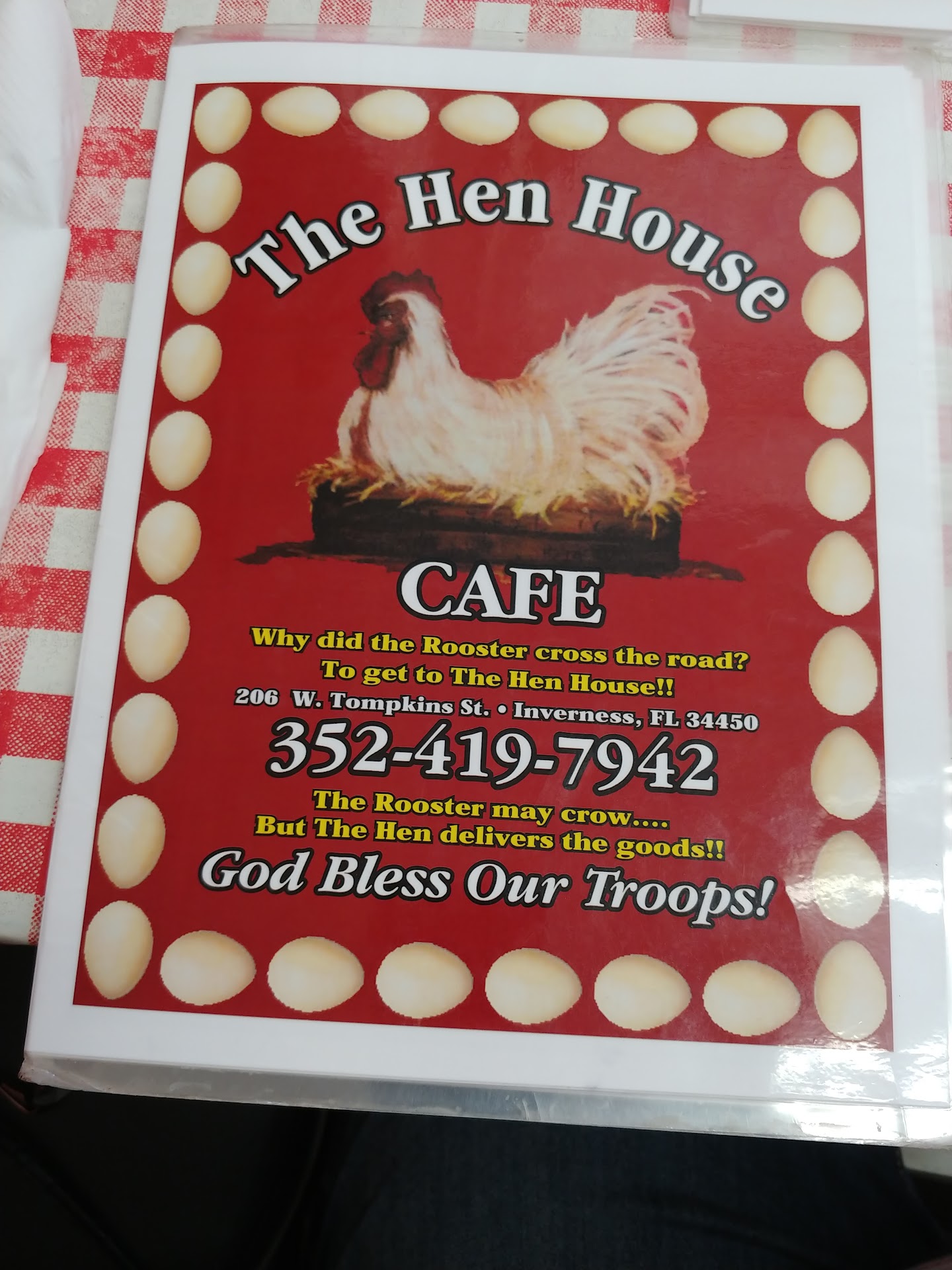 Read moreThis was our first and probably only time we will ever visit the Hen House. The server seemed like a nice person, but she didn't seem to care about our food, what we needed, nor our experience. She came to our table a couple of times to bring water & take our order, then pick up a plate after food was served. However, she didn't say another word to us after taking our order, though. She never asked us if we liked the food, never checked to see if we needed ketchup or condiments, water refill...Nothing. We went to the checkout area & that lady asked how it was. We told her "it was quite greasy." She said "oh, I'm sorry to hear that. Did you tell your server?" I said, "no, she never came back to check on us or anything." She simply replied, "I'm sorry," and that was it. We don't understand why this place has such a high rating because we've had far less greasy food at Denny's & Waffle House along with better service at most other places. I'm sharing this review to be honest about our experience, so please don't allow our review to sway your own perception; try it yourself & use your own judgment because other people...