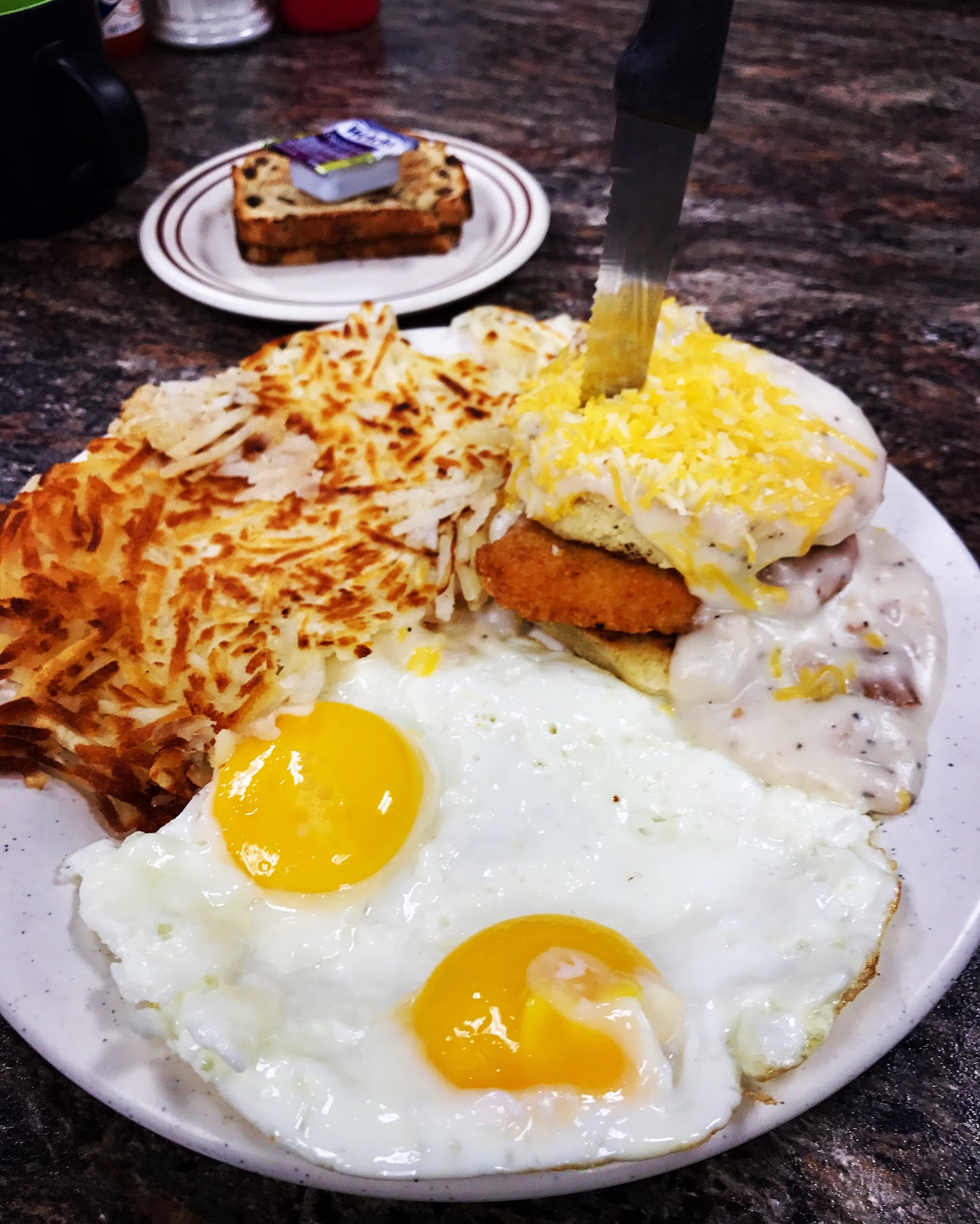 Read moreMy wife and I’ve seen this restaurant and We wanted to try it so we walked in and we found a table and sat down a few moments later the waitress came up, took her drink order and then came back and took our food order. Everything seemed to be going. OK. She came back with our food and drinks. I asked for hot sauce. She said what kind I told her I would like crystals. She repeated it back and said OK walked away and she continued helping other customers, and I noticed my eggs was not cooked at all. They was completely raw on top of all my food and then when she came back through, I had to stop her from walking past and I told her about my eggs, not being cooked at all, and she gave me a rude disrespectful attitude instead of trying to make it better. She just took the eggs off, so I end up eating the rest of my food and I never received my hot sauce or a drink refill and when we went to pay for the bill, she got snippy that we did not leave a tip so my wife and I paid $35 for very little food bad service and we left hungry so we had to go somewhere else and spend more money they should change the name to...