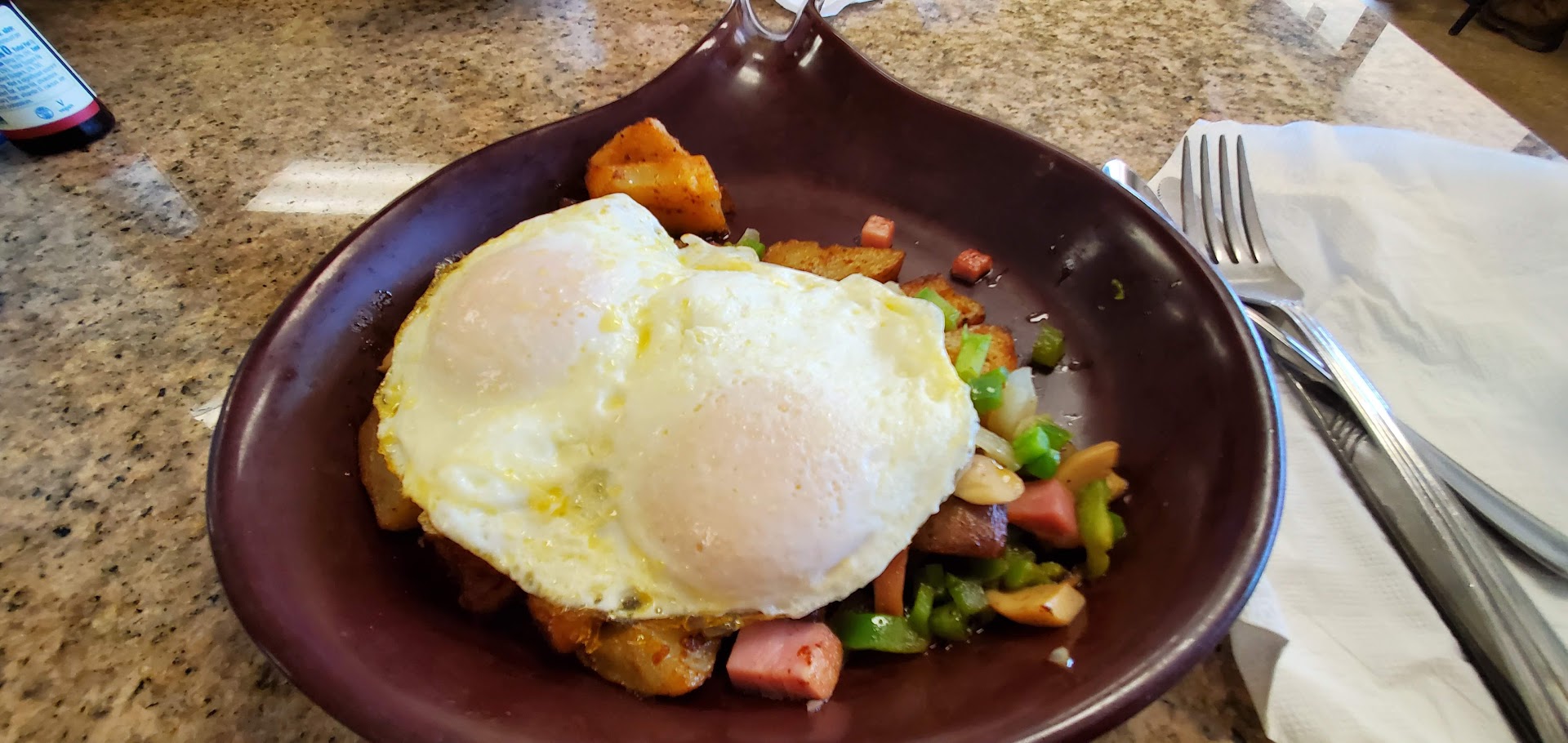 Read moreMy wife and I’ve seen this restaurant and We wanted to try it so we walked in and we found a table and sat down a few moments later the waitress came up, took her drink order and then came back and took our food order. Everything seemed to be going. OK. She came back with our food and drinks. I asked for hot sauce. She said what kind I told her I would like crystals. She repeated it back and said OK walked away and she continued helping other customers, and I noticed my eggs was not cooked at all. They was completely raw on top of all my food and then when she came back through, I had to stop her from walking past and I told her about my eggs, not being cooked at all, and she gave me a rude disrespectful attitude instead of trying to make it better. She just took the eggs off, so I end up eating the rest of my food and I never received my hot sauce or a drink refill and when we went to pay for the bill, she got snippy that we did not leave a tip so my wife and I paid $35 for very little food bad service and we left hungry so we had to go somewhere else and spend more money they should change the name to...