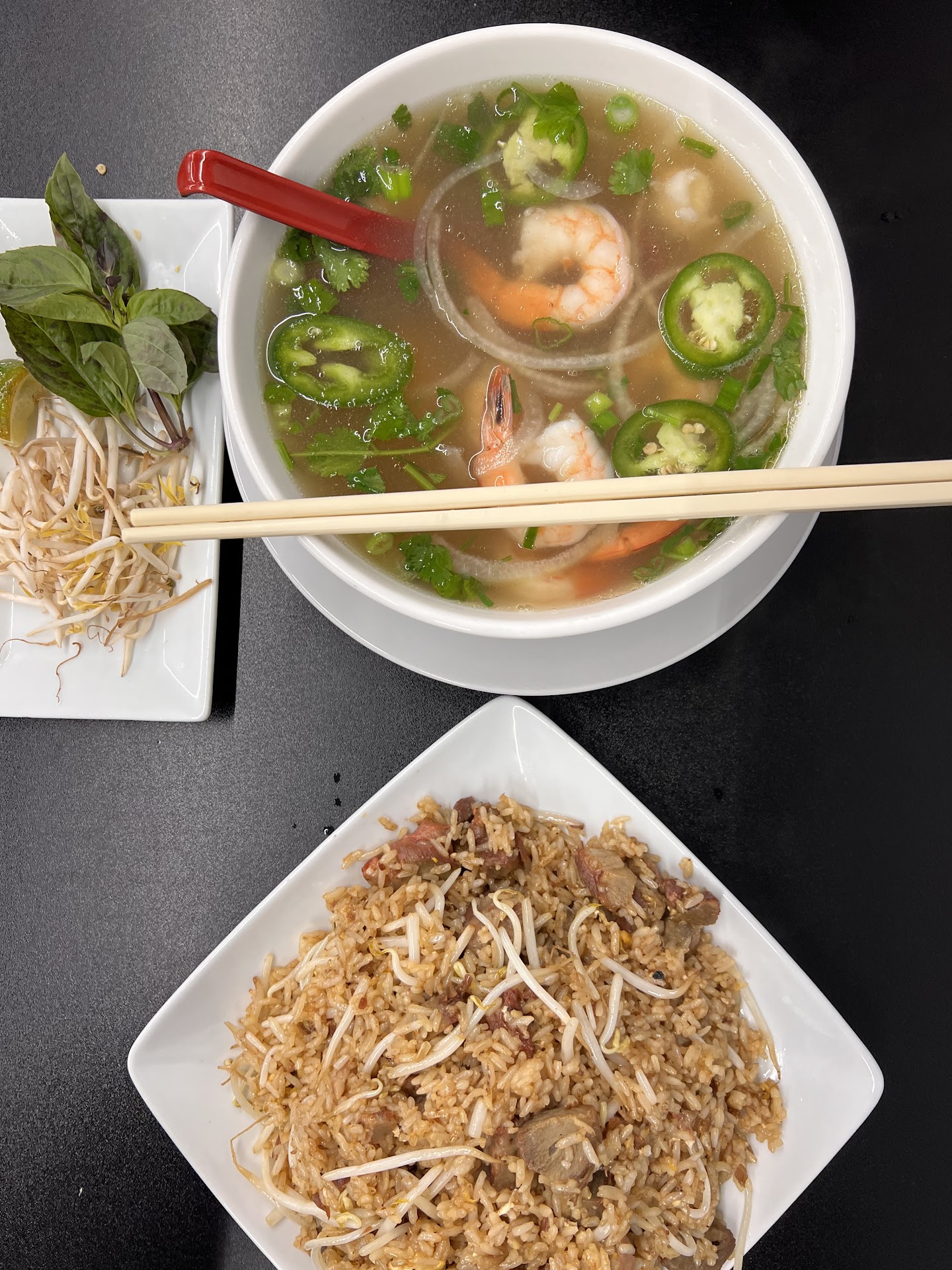 Read moreIt was a bright, open, well lit, five stars because of the clean environment. Staff has always been upbeat and smiling every time! It's been a while since I had visited, and the food was very good, as I remembered. They opened at 11 am, I got there at 11:15 am. and I was the first one. Pick your table, Courtney said! By the time I got my food, they had sent several people out with Togo orders, and several tables were now occupied! Just steady moving the staff was, food came out quickly and hot! I ordered the large beef pho combo (rice noodles, like ramen noodles), a soup with pork, beef , brisket, meatballs , I had them not add the tripe and tendon that was included as a personal preference and then for five dollars more , I added shrimp I left spending 22$, pre tip, approximately, while drinking water! I do believe that is one of the most expensive combs they offer. They do have several less expensive options! Photos of menue are online as of time of this post. I ordered what I believe has the most meats and largest bowl! I did finish the large bowl of soup filled, and the side plate of extras added in, too! Enjoyed chatting a bit with the friendly neighboring tables! Location is close to everything in town! Go check them out! I'll go again...