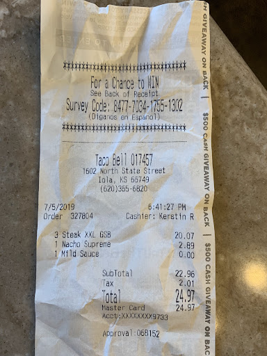 Read moreWell it's 6:00 Saturday evening and I arrive at Taco Bell before I could even get to the counter the person working the counter asked for my order which I gave it to him specifically and he charged me specifically however there are six employees at that time but I can count there are 11 filthy tables not to mention another gentleman and his two children are there not only did they mess up my order but they messed up his order it clearly stated on my order it was for here they made it to go while standing there watching them make my order said person making my order says oops I put the wrong cheese on without realizing she messed up the order to begin with she just adds different cheese to it folds it up. I ordered two soft Taco Supremes and a small drink I got what you could call to standard soft tacos which had no lettuce no tomatoes no sour cream just cheese and meat when I took it back she had to ask what was wrong with her co-worker therefore she said nothing they fixed it they brought me my food. It's been 6 months since I come back here and the staff is changed the help is gone downhill and the place is a disaster the floors a mess there's cheese all over the floor in the lobby every table I wanted to set it had either sprinkle cheese or liquid cheese or hamburger on them so I doubt that I...