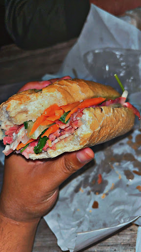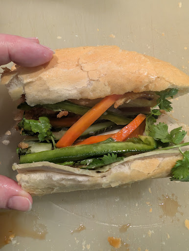 Read moreWe stopped to grab banh mi for lunch after hearing wonderful reviews. As soon as my husband and I walked in with our 9 month old, they offered him a small baguette while we decided what to order. I picked the vegetarian banh mi and my husband chose the pork belly. The bread was crispy on the outside and soft on the inside. The veggies were in a separate bag to keep from getting soggy. I tried both sandwiches and would definitely eat either one again. Delicious flavors! And our baby would not let us take away the bread, so he was pretty happy...