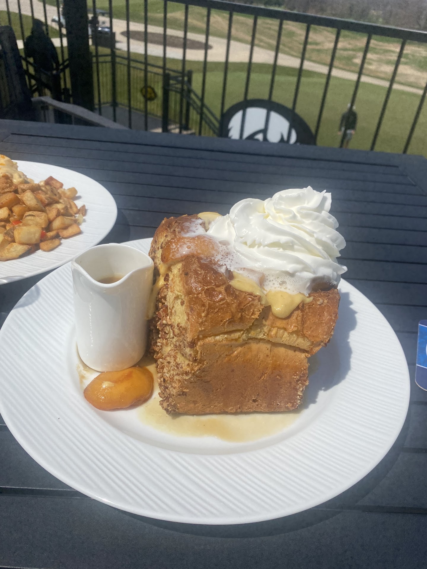 Read moreThis was one of the best brunches ever! I got the peach French toast and good lord it is massive! It was the most delicious French toast I’ve ever had. The peaches are caramelized and the flavor is out of this world. We also tried the Benedict trio which is unique and delicious. Lots of flavor and perfectly cooked. We sat on the patio and enjoyed the sun. Everyone should come enjoy this place. It’s open to anyone, you don’t have to golf. The service was great and the chef even came out to say hi. Nice guy and obviously...