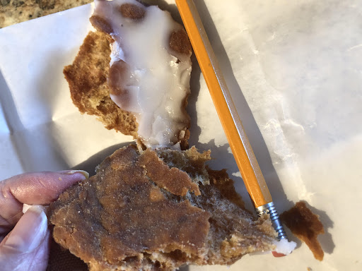 Bad Day? I have made the trip from North Liberty to IA City today just to go to this donut shop. I often find that the selection isn't what I'd like to see, but can usually find something that I like. The chop suey has been a safe bet for me.The one that I got today was flat with a few air bubbles, hollow inside and the consistency of a slightly burnt heel from a loaf of bread. It was no thicker than a pencil. (see photo) Lots of icing and a little bit of spice taste couldn't save it. I ended up throwing half of it away. I really like this place and want it to stay in business. The employees are always pleasant and helpful. Even with poor selection, I could count on the product being a certain way, so it was worth the trip. The chop suey that I had today should have been dumped instead of sold. It wasn't worth the trip or the money. I'm hoping that this is the exception, rather than the rule. If it happens again I won't be...