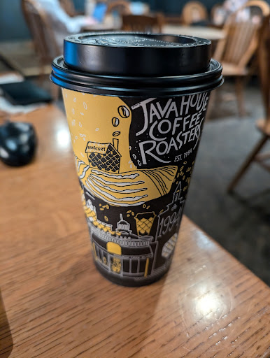 Read moreFirst of all, there are no photos to share, as I don't think it fair for The Java House to show an empty establishment by no fault of their own. That being said, I would like to comment on the great food and drinks they have to offer. Our first visit was to get a quick, cold drink on a warm afternoon. The Mango Hibiscus Iced tea my wife ordered was refreshing and Iowish Cooler that I purchased was very tasty. Our son selected the Pink Hawk, which was very good as well. The drinks were generous for the price we paid. Our family like The Java House so much that we came back the next morning for breakfast. I ordered the Spicy Southwest Sandwich, my wife the Caprese Egg Sandwich, and my son the Morning Muscle Sandwich. All three were great, but I though mine Spicy Southwest could have used a bit more spice. My wife and I, however, were disappointed with the coffee. She had the American Gothic 16oz pour over, and I the St. Louis Blues 16oz pour over. Both of us cannot recall ever having pour over coffees before, and our disappointment may be more over our preferences for making coffee than the coffee itself. Needless to say, neither my wife or I finished our coffees. Overall, I would recommend The Java House to anyone in the Iowa City area. The atmosphere (as it was in this Age of COVID) was inviting and comfortable. The staff were friendly...