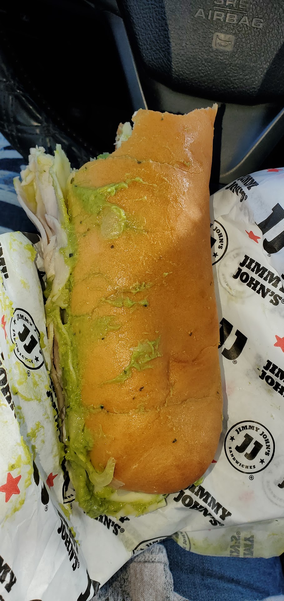 I stopped in here after a long day at the VA hospital (11/4/2021, approx 3:50pm) to order my normal #12 Beach Club with bacon combo, no chips, full pickle....I have previously NEVER had a bad experience at any other Jimmy John's, but had never visited this location before... well, this one was atrocious. 1st- my bread was very stale and so hard I could barely bite through it....and I have 6 dental implants in my mouth, it shouldn't be that hard. 2- so glad my paper got the avocado spread...because my sandwich didn't get ANY of it... literally, all the spread was on the outside of my bread, from top to bottom, and not a single bit of that green goop was inside where it should have been...go ahead, look at the picture... 3-the bacon....I understand that the meat is cold, but my bacon was LITERALLY still ice cold, with little frosty bits on it, like it had just been defrosted. No idea if that is the case, but I get this sandwich all the time, and have never had ice cold bacon on my sandwich. 4-the pickle...this one might seem petty, but hey....I substitute the chips for a full size pickle, and it wasn't even cut in half....so I'm trying to drive 90 mins home, eating this huge dill pickle in my hand....GTFOH.... 5- everything on my sandwich was falling out the side. Should just call yourself Subway, and do away with the pretense.