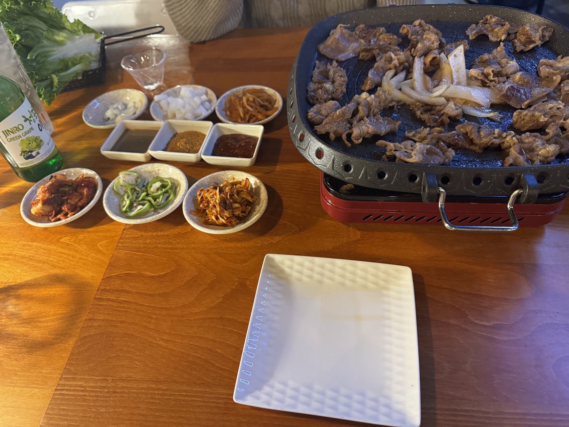 Came out here for a date, nobody else in the restaurant so easy to be seated (we did make a reservation easily just in case) and it was great! I do like the addition of call buttons at each table to call for a server easily but we didn’t need to utilize them for our night as she was plenty attentive to our table! Our server was very nice and polite, explained things well to us and chatted some about what we had ordered including some recommendations for how to eat and season the meat as we’d gone with the korean BBQ which neither of us had ever tried before! The explanations were greatly appreciated because we wanted to make sure we were eating correctly and the recommendations for seasoning/sauce for the meat were amazing! We also asked her favorite flavor of soju as we’d never tried that either and it was a great thing we did as her choice was one neither of us would’ve initially thought to pick but we loved it! Even empty, we enjoyed the atmosphere of the restaurant and I’m sure when the restaurant is busy the atmosphere is equally as enjoyable, especially if you enjoy live music which we noticed is something they have at least every Friday! Overall, it’s definitely a place I would come back to and have already recommended to several other people for the food and...