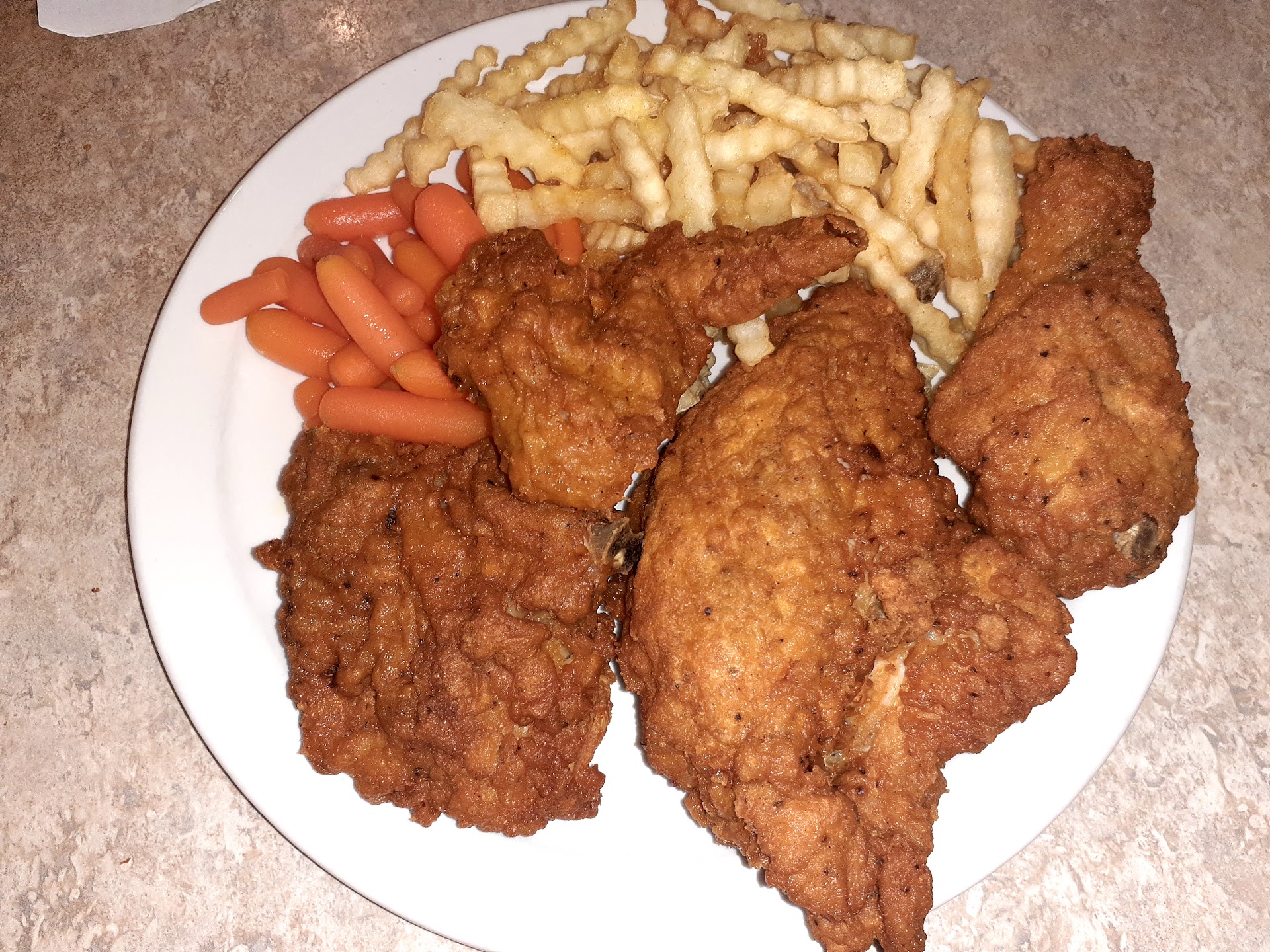 Food- was mediocre diner style food, nothing special. My kids got burgers that were just hard dried out bricks. My wife's chicken was so dry it looked like splintering wood. I was lucky and got breakfast which is hard to mess up but the wrong food was brought to me, which goes with the over worked staff.