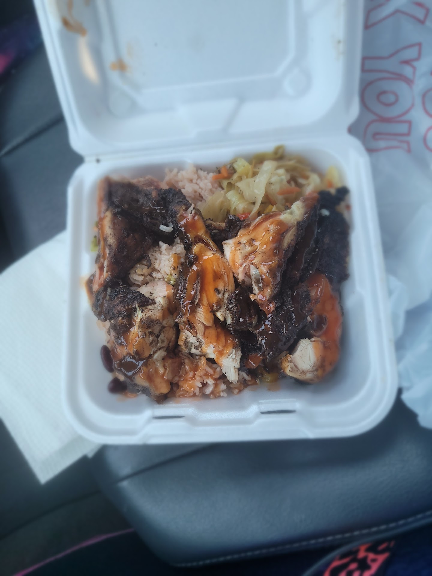 Read moreOmg!! I've never had Jamaican jerk chicken, but this will not be my last! I got the jerk chicken & 2 sides; cabbage & red beans & rice... 💣!! So good, flavorful, & a little spicy for the tender tongues. I will definitely be back. My favorite meal I've had in this city since June. Thank you so...
