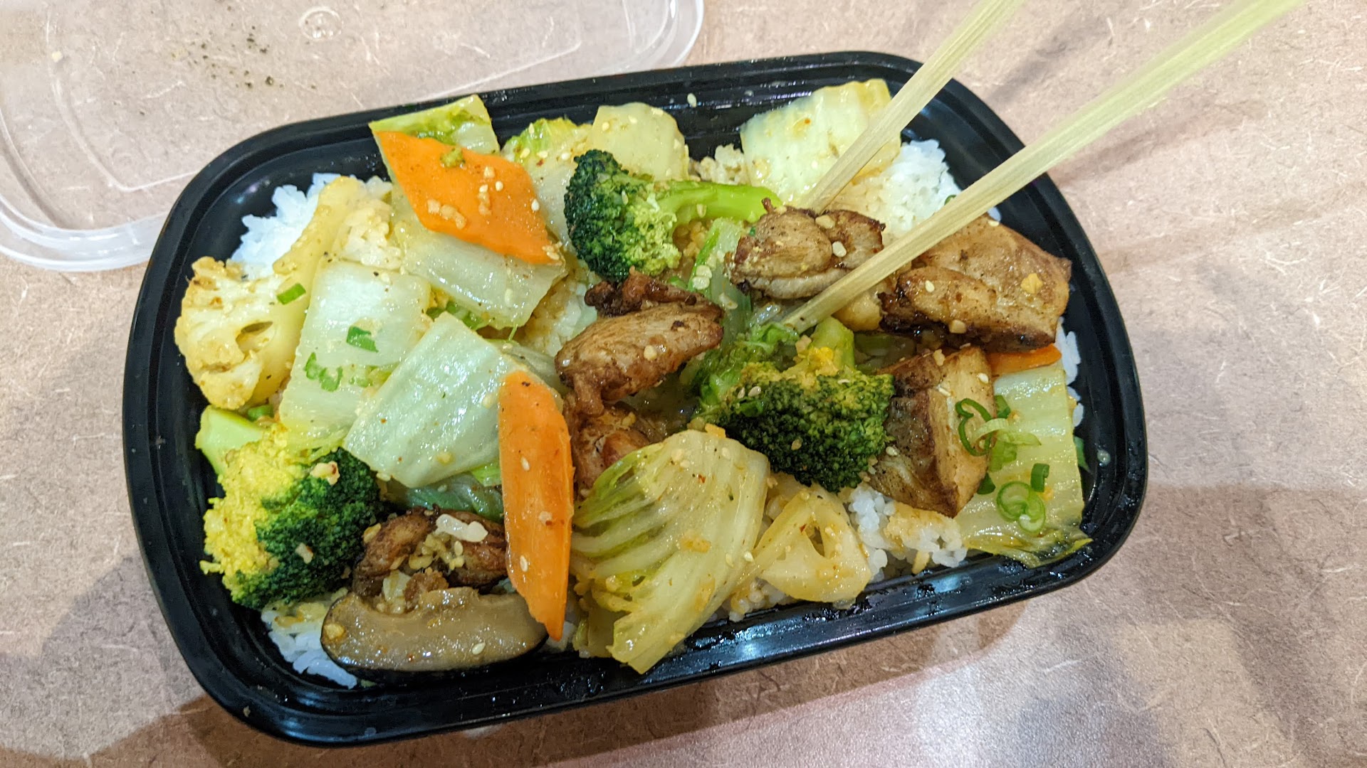 I ordered the Spicy Thai Curry Chicken Stir Fry. I expected something along the lines of Japanese curry, or curry sauce with chicken and rice. What I received was an unseasoned veggie mix, with chunks of chicken, and a pound of white rice on the bottom. No seasoning, NO curry flavor, and a ton of garlic. Like, a LOT of garlic, as if to compensate for the lack of seasoning. I am not exaggerating when I say this was unseasoned.