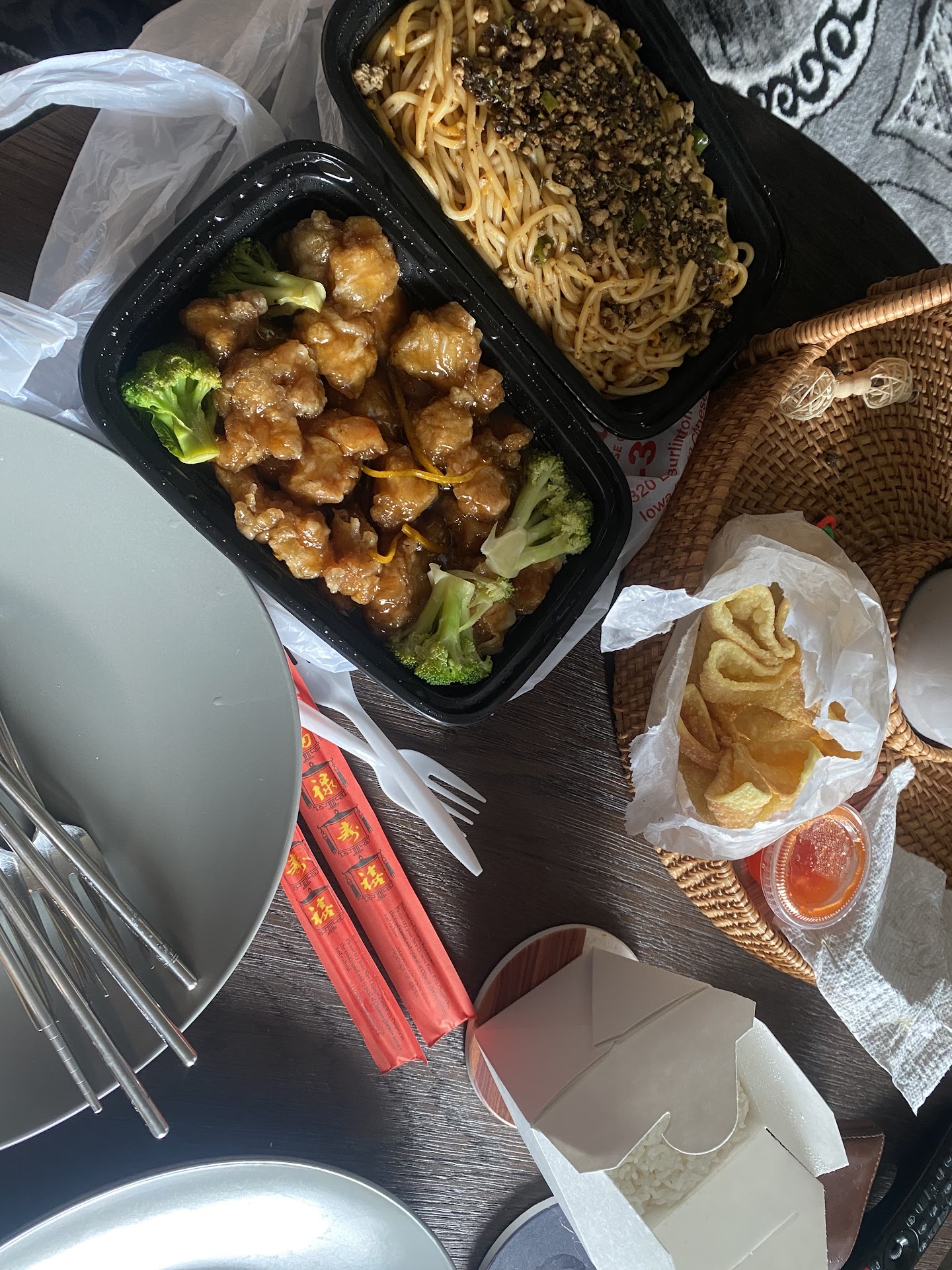 Now for the food, we got a more traditional meal Szechuan dandan noodles and a “white” person meal orange chicken with crab ragoons. The orange chicken was Panda Express orange chicken. Flavor wise it was good but the chicken had 0 crispiness to it which is something I always look forward to in orange chicken. I really enjoyed the way the orange peels were cut in the orange chicken sauce. Additionally, the white rice that came with it was very good. Moving on to the Szechuan Dandan noodles, those seemed to have authentic flavoring but my gripe with it is that it was a bit oily for my taste and I feel it lacked on the Szechuan. It was definitely a new flavor and a pleasant experience. Lastly the crab ragoons, they were good in flavor. The crab ragoons definitely didn’t have the crab meat taste instead more of a cream cheese ragoon taste. As for the sauce that comes with it, I couldn’t tell you what it was: I assume the typical sweet chili sauce. I just wasn’t a fan. I personally used another sauce (Mae ploy sweet...