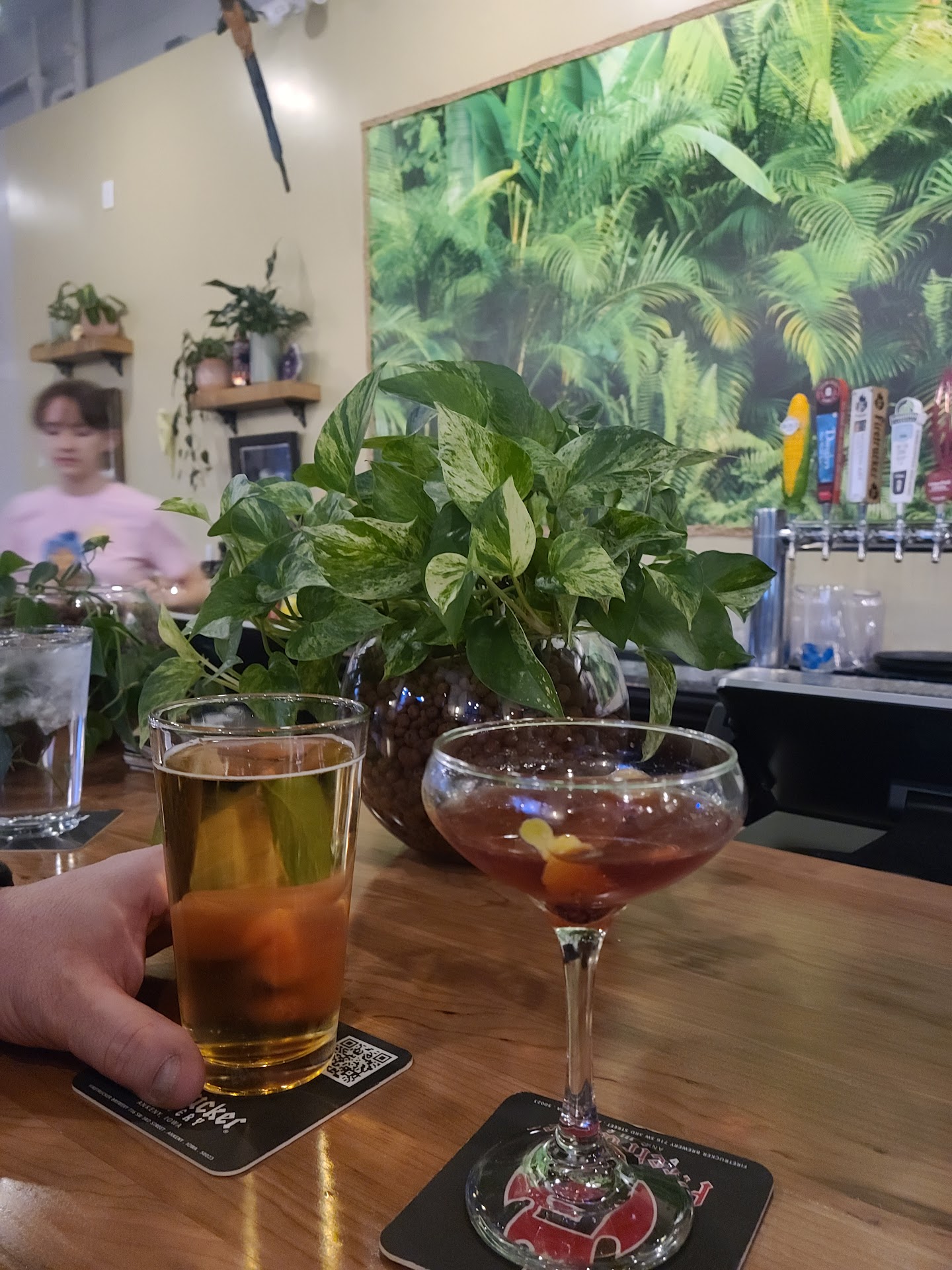 Read moreMy husband and I had a delightful visit to the Green House yesterday afternoon! The servers Claire, Claire, and Cameryn welcomed us into this lovely green Oasis and were super attentive. They gave wonderful suggestions on signature cocktails. I tried 3, all of which were better than the next: Barbarella, "Summer in a Cup", & the Josephine in that order. They also didn't give my husband too much grief for not leaving his Busch light comfort zone (fortunately it is on tap so I can talk him into a return the next time we are in town!). The owner, Emily, was a delight as well. We hope you enjoyed movie night with your daughter and we look forward to visiting when we return to town (fingers crossed that mimosa flights will be added to the menu! 😉). Thanks for taking care of us!...