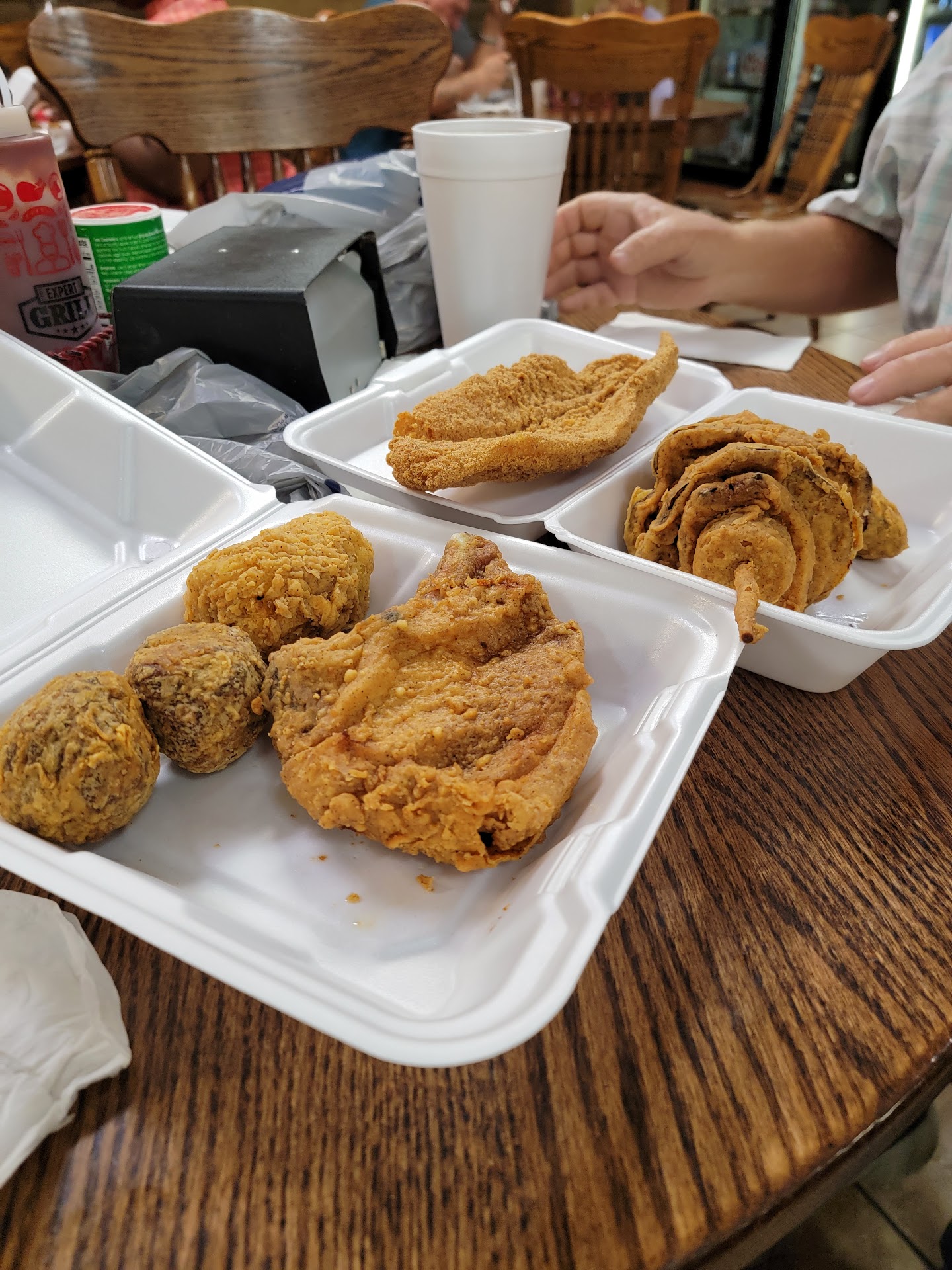 We ordered the Boudin balls, catfish, fried Porkchop, deep-fried Kabob, and deep-fried corn on the Cob. Let me start off by saying, "OMG!!" Their food is AMAZING!! The Boudin balls were spiced just enough to give them a little kick. The catfish was simply "to die for." It was crispy but not overdone. The fish itself was flaky and had a mild taste. Their fried Porkchop . was deep fried with a light crispy batter that kept the chop moist, juicy, and very tender. It was very tasty. Our deep-fried kabob consisted of chicken,sliced bell pepper and onion, and sausage. It, too, had the same batter coating as the chop. The Kabob was delicious, and the chicken and sausage were nicely spiced. We'd never eaten deep-fried corn on the Cob. It, too, had that wonderful crispy batter coating. The kernels weren't hard but tender and very juicy. They gave you generous portions. My husband and I ordered 1 of everything and still brought home enough for dinner for the 2 of us. The ladies behind the counter were very sweet and were patient since this was our 1st time ordering. Their dining room was quaint with enough tables to seat about 30 people. When you are in the area, do yourself a favor. Stop at Ribedeaux's. The food is...