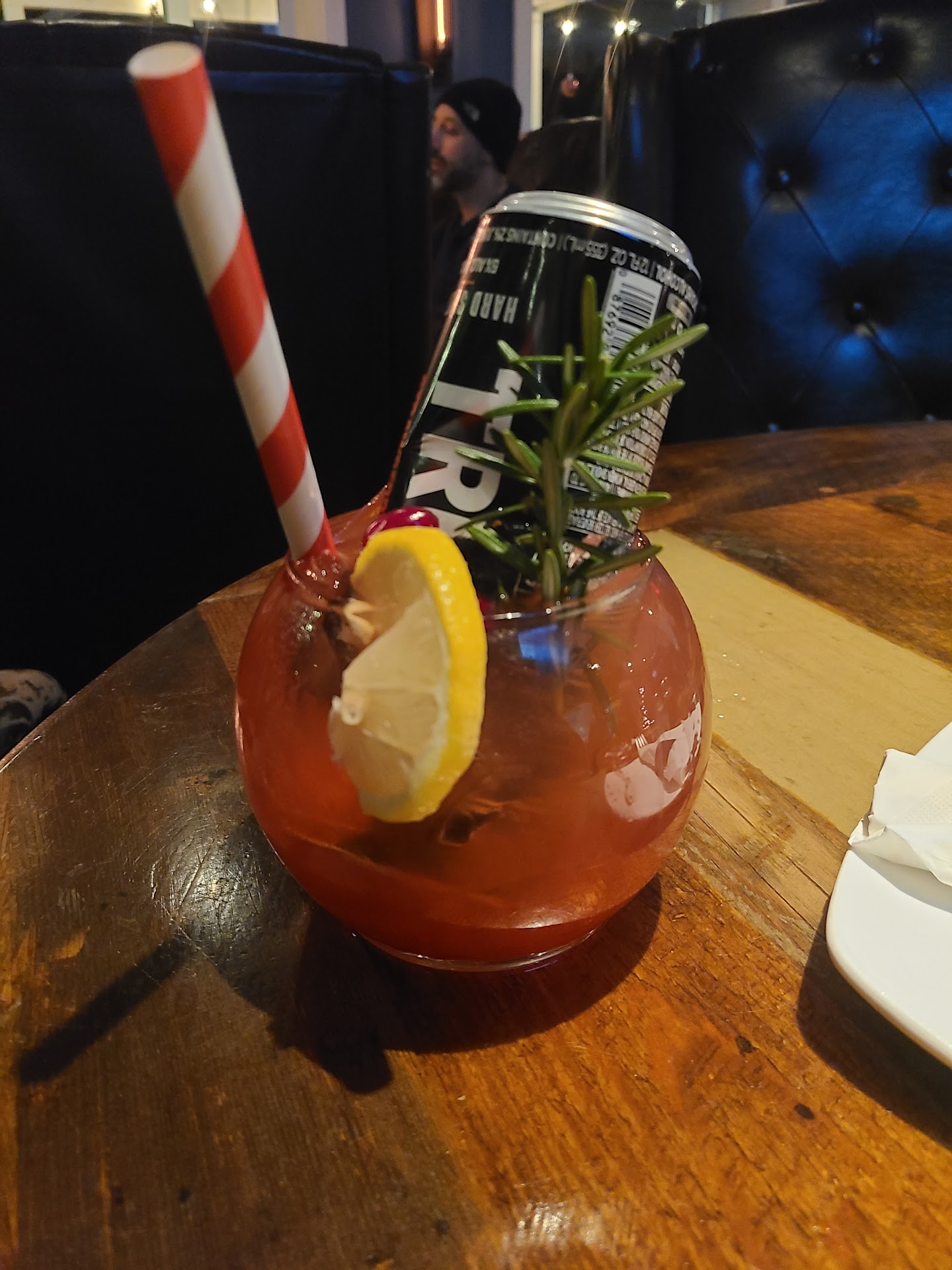 Read moreI was pleasantly surprised walking into this relatively new restaurant, (Dec. 2019) is the date they opened I believe. I was greeted to a warm atmosphere, cozy oversized leather chairs, rustic wood tables and a friendly waitress. We ordered from a specialty drink list and I finally chose a martini,a cucumber martini, which was filled to the top of the glass. My husband had a long Island Ice Tea. Both boozey and delicious. After sitting and looking over the menu filled with a variety of foods including some amazing comfort foods...to my delight I saw they had a salad bar, which you hardly ever see now. It offered spinach, field greens, roasted asparagus, beets, egg, and so much more.... You cam grab your topping and rolls at a separate station...and it was all that, crisp and delicious. I ordered the Salmon with a compound butter sauce, green beans and smashed potato. All I would have expected, the salmon came medium, so it was moist and melted in your mouth. It was topped with a compound butter sauce, which did not hide the salmons flavor but enhanced it. My husband had the chicken pot pie. It came in a large cast iron skillet, with a fresh crust which flowed over the sides. Filled with loads of shredded chicken carrots and peas, it had a slightly sweet flavor. It was literally enough for two to share! The waitress was very attentive and manager came over and asked how everything was. I quickly told him how delighted we were that we stopped by. This will definitely become one of my favorite go to spots. I encourage everyone to give it a try. I can't wait to go back again! We are actually coming in...