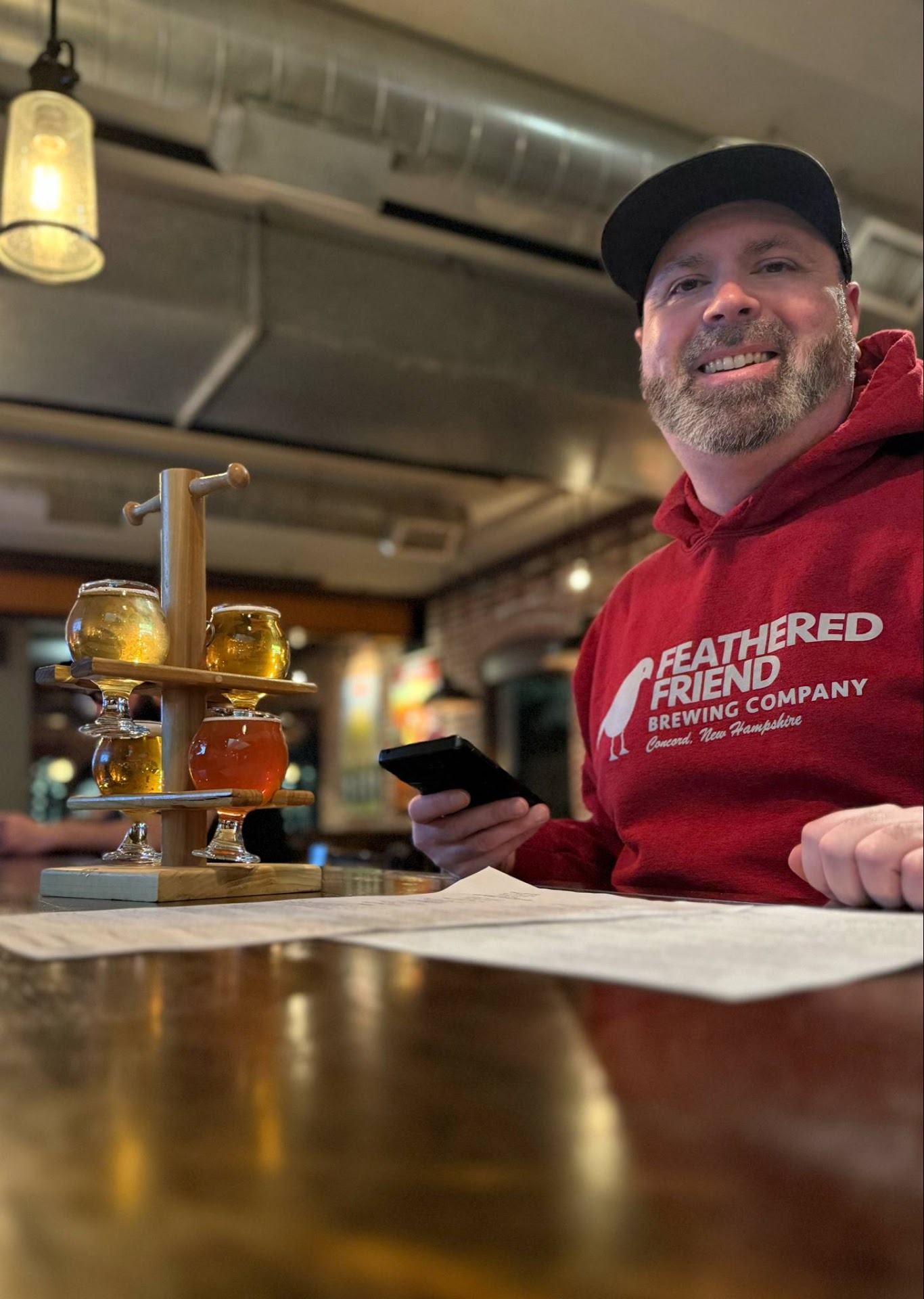 The first taster in my flight of four was the AMERICAN LAGER that I personally thought was excellent & a above average lager for sure. My second 4oz taster was the IPSWICH PILSNER that was another good light offering from these guys. Definitely off to a good start beer wise here so far. The third taster was the BLUEBERRY SHANDY that was just okay, but I'm not big into shandy's or radler's, I may just need to find the right one. The last 4oz I scooped was the CRANBERRY BERET Fruited Sour which was a average sour, I enjoyed it more than the shandy though. I then grabbed a pint of the flagship IPA simply named IPA, a above average delicious offering as far as American IPAs go. I finished off my visit with another 4oz taster of the HELLBOUND Barleywine, a yummy barleywine packed with tons of flavor & notes raisins & caramel. π»πΊπ₯ββ