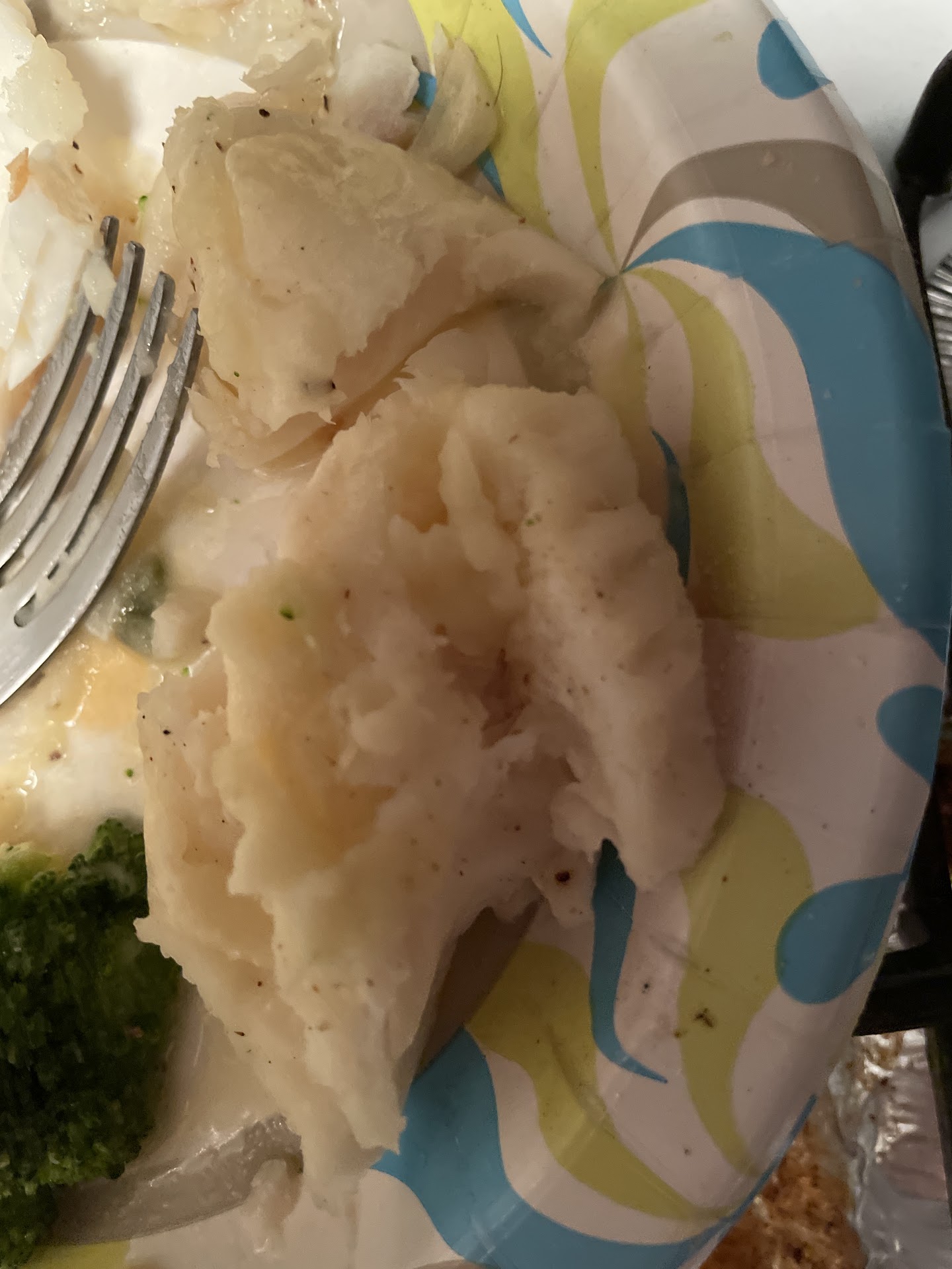 3 bowls of clam chowder that could be used to lay brick. This chowder stuck to the spoon. The top of the lid popped off in the bag on the way home and it did not spill. My mother asked "who ordered mashed potatoes?" when she opened one.
