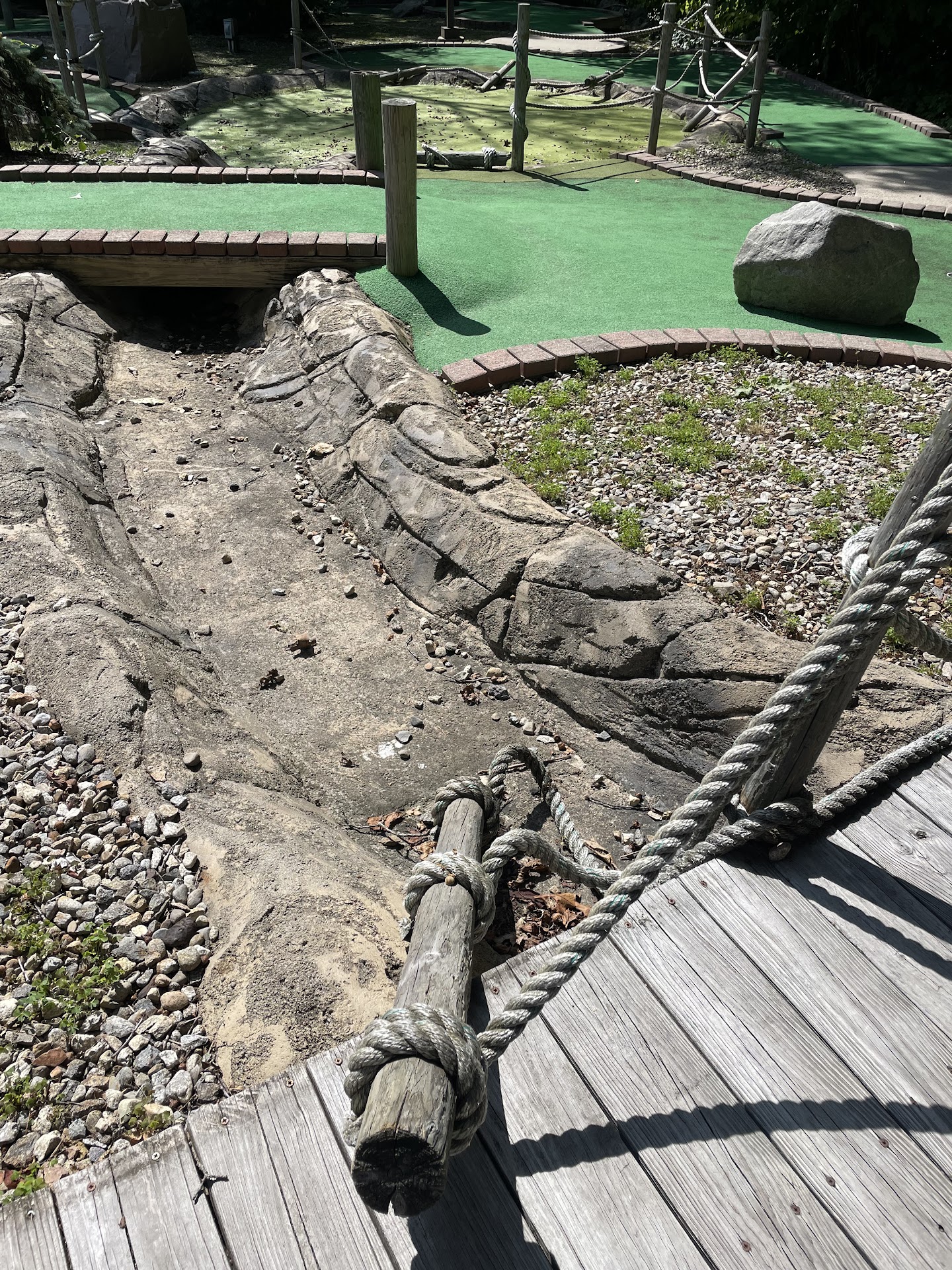 Do NOT mini golf here! I should have heeded the red flags early in our experience today: no score cards available, a super limited selection of balls, and the cashier’s request that we not attempt the last hole with the cow because it was broken. Now I’ve read another review from 4 years ago citing the same “please don’t play our busted hole” request. How do they still claim to have mini golf? It is clearly an abandoned and terribly maintained experience. My kids and I have played a lot of mini golf this summer and have never experienced such a decrepit course: There is moss and mud on most of the turf, the fencing is broken and laying all over the course, the rivers do not flow (they are dry and full of sticks, rocks, and leaves), the trees and plants need trimming because they encroach many of the greens, and the “ponds” are filthy swamps full of frogs and algae. We toughed it out (my kids still love to play!) but shared our concerns with the young lady at the counter when turning in our clubs and balls. We were met with an apathetic shrug and “well we’re an ice cream place and not a mini golf place”. Disappointing and somewhat rude response for an employee of a place that says “ice cream and mini golf” on the sign. We had originally went there for both the ice cream and mini golf, but after the mini golf, we decided on a strong NO to spending another dime here. 10ish years ago, this place was the best there was. Today, unfortunately, it took top billing...