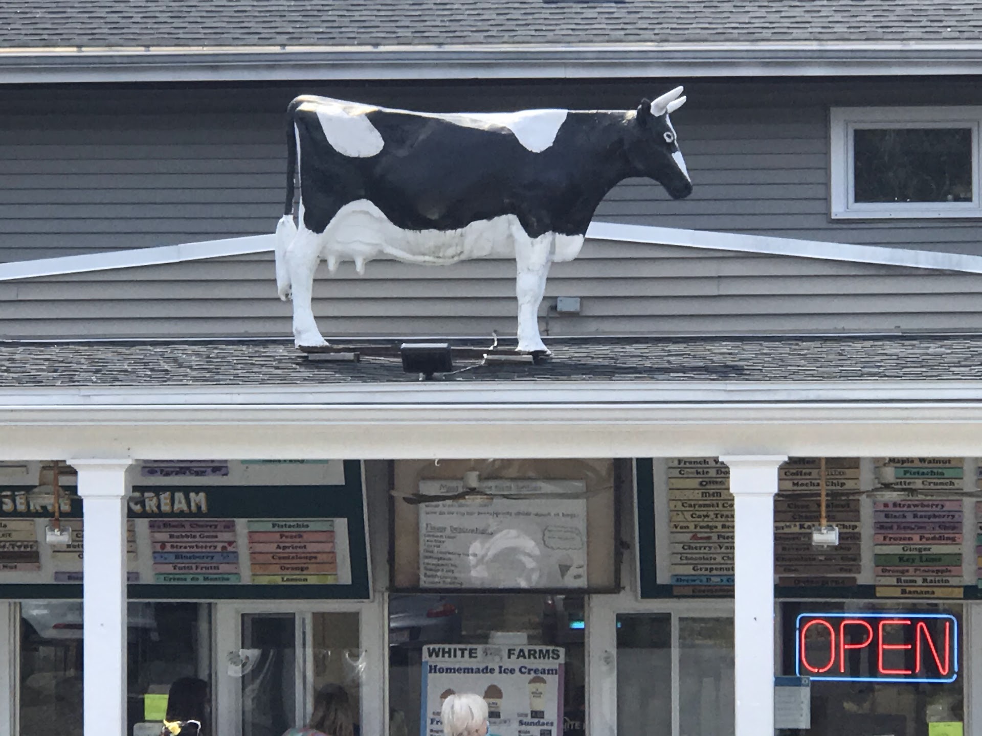 Read moreWhite Farms Ice Cream in Ipswich has been around for over 50 years and is a place I frequented as a kid. Now, whenever I travel back to this area it is a Must stop for great ice cream. They have over 50 flavors of home-made ice cream both hard and soft serve. Any variation of chocolate is my choice, especially the Chocolate Reese’s Peanut Butter Cup while my wife likes the Almond Joy. Prices are fair and the quantity is large. They are easily identified by the cow on the roof. Plenty of tables for seating and an outdoor tent for shade from the summer sun. Mini golf is...