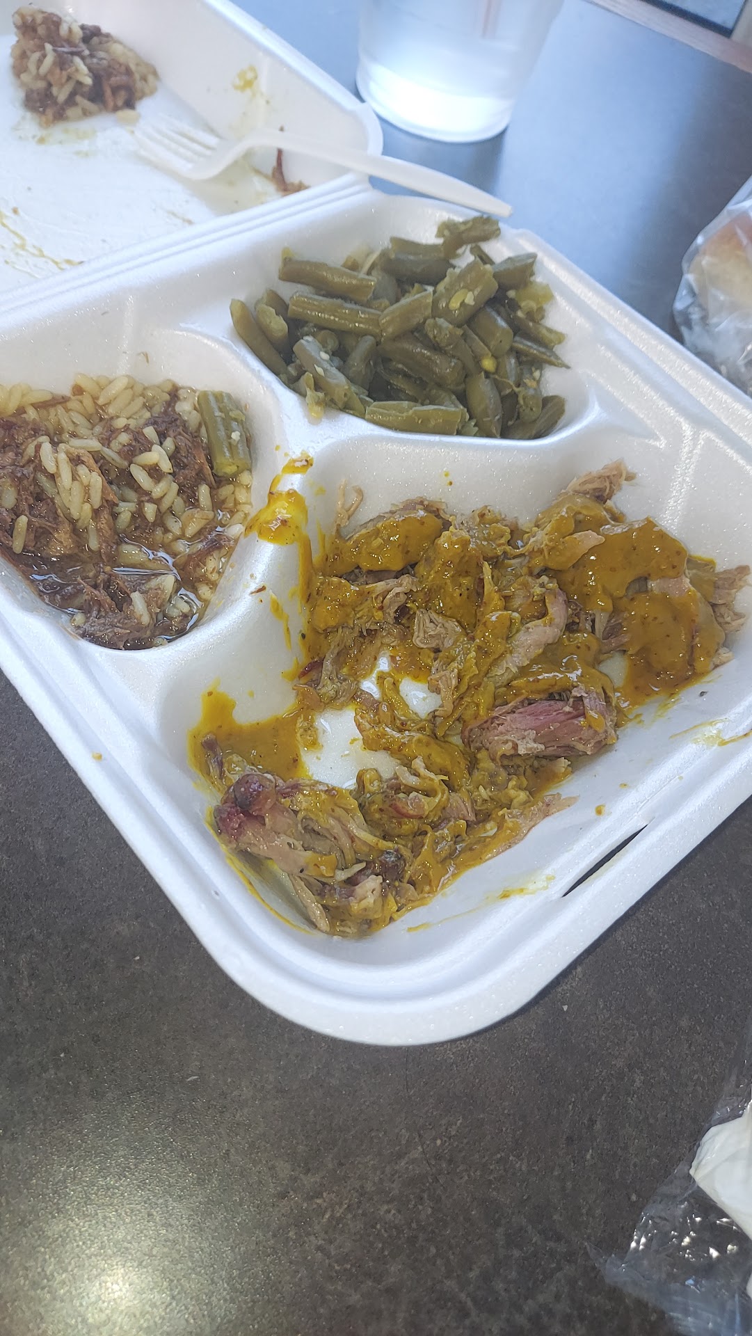Ā Ā Ā Read moreNo one else was in the building. Just us & a worker. She microwaved something - either the brisket or the pork. (EDIT TO ADD) It wasn't that we didn't see a chef. We HEARD the microwave door open and close and HEARD the buttons beep. (End EDIT) The red sauce tasted like a dolled up tomato paste. The baked beans were not good. They had a weird taste. The macaroni and cheese was incredibly bland. The pork tasted old & dry. The yellow sauce was extremely heavy on vinegar. The brisket was tough - I had to use a...